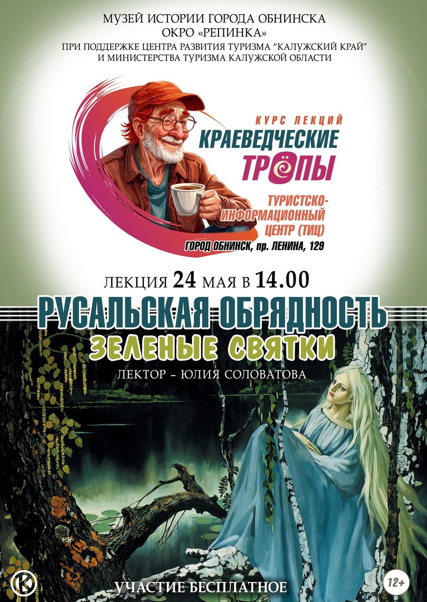 🗣24 мая в 14:00 в туристско-информационном центре «Калужский край. Обнинск» пройдёт лекция «Русальская обрядность. Зеленые святки». Лектор Юлия Соловатова. Вход свободный. Обнинск, пр-т Ленина, 129 (вход со стороны проспекта). 👍 Подписаться | Прислать мероприятие