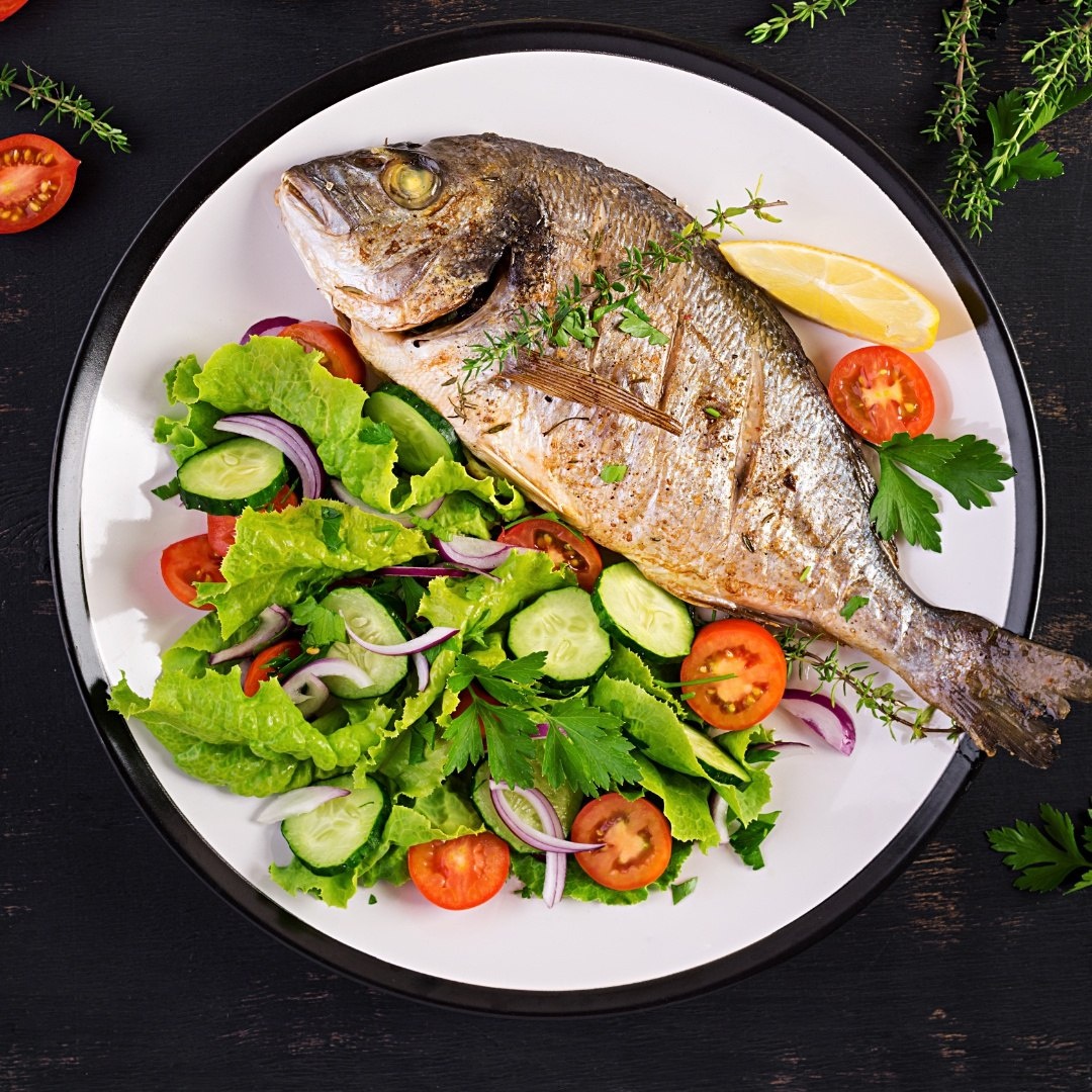 Запеченная дорадо Ингредиенты⤵️ 🔸Дорадо — 1 шт. 🔸Лимон — ½ шт. 🔸Оливковое масло — 2 ст. л. 🔸Чеснок — 2 зубчика 🔸Розмарин — 2 веточки 🔸Соль, перец —1 щепотка Приготовление🐟 1. Разогрейте духовку до 200°C. 2. Рыбу очистите, натрите солью и перцем внутри и снаружи. 3. Нафаршируйте дольками лимона, чесноком и розмарином. 4. Сбрызните оливковым маслом, заверните в фольгу. 5. Запекайте 25–30 минут (для хрустящей корочки раскройте фольгу за 5 минут до готовности). Рецепт дня #рыба #запеченная_рыба #дорадо #лимон #специи #ужин