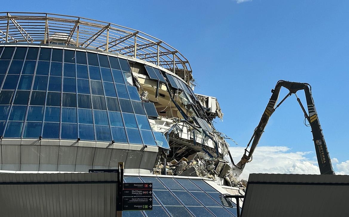 В столице начали демонтировать северный вестибюль пешеходного моста «Багратион», который находится на Пресненской набережной возле делового центра «Москва-Сити».