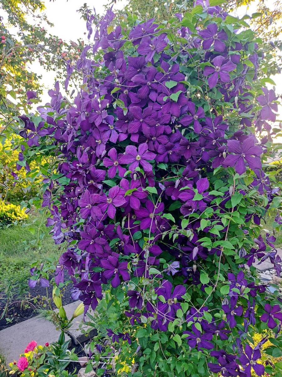 Не устану восхвалять и писать торжественные оды клематису сорта Негритянка. Много лет он рос в саду у мамы. Она неизменно им восхищалась, я морщила носик. Меня манили другие сорта: дивные, махровые, с огромными соцветиями размером с десертную тарелку, не меньше. Я покупала и сажала, с замиранием сердца и в предвкушении неземной красоты ждала очередной весны. Мне же было понятно, что только через год куст должен проявить себя согласно описанию сорта. Одно мне было не ясно, почему с каждым новым сезоном из зимы выходить никто не собирался, либо выходило чахлое, слабожизненное нечто. Цветения роскоши тоже не случалось. Я закопала в саду вместе с новомодными, разрекламированными саженцами хорошую, такую кучку денег. А Негритянка у мамы, тем временем, росла и хорошела, набралась силы и мощи, без устали цвела без особой заботы. До меня постепенно стали доходить простые истины. Я гонялась за павлином у которого под прекрасным хвостом была полная апож! Прочтите волшебное слово "апож" наоборот