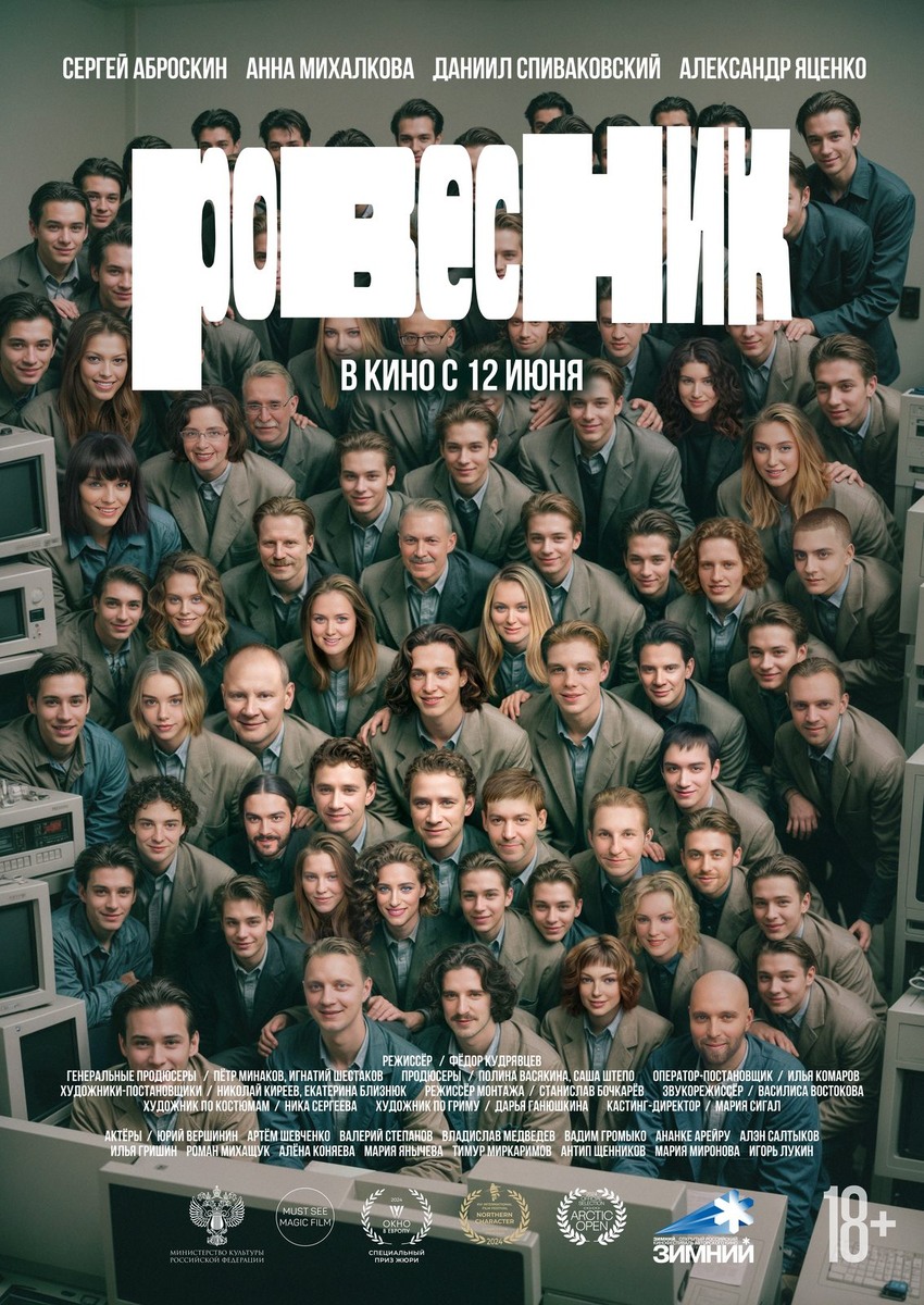 В сети появились финальный трейлер и постер «Ровесника» — первого российского мокьюментари с использованием deepfake о стартапе 90-х и поиске пропавшего отца c Анной Михалковой, Александром Яценко и Даниилом Спиваковским. Кинопрокатная компания Must See Magic Film выпустит фильм на большие экраны 12 июня. По сюжету 20-летний парень в кризисе прячется от проблем в бабушкиной квартире. Роется в видеокассетах из семейного архива и узнает тайну — его настоящий отец пропал до его рождения. А перед этим в 1990-е основал первый российский интернет-стартап. Гриша встречается с героями старых видео и записывает с ними интервью, чтобы больше узнать об отце. Параллельно грустит и веселится, влюбляется, тусуется и работает. И все это фиксирует на камеру. Главную роль в фильме сыграл молодой актер Юрий Вершинин. Компанию ему составили Анна Михалкова, Александр Яценко, Даниил Спиваковский и Сергей Аброскин. «Для меня важнее всего было передать через своих героев ощущение свободы, наличие возможносте