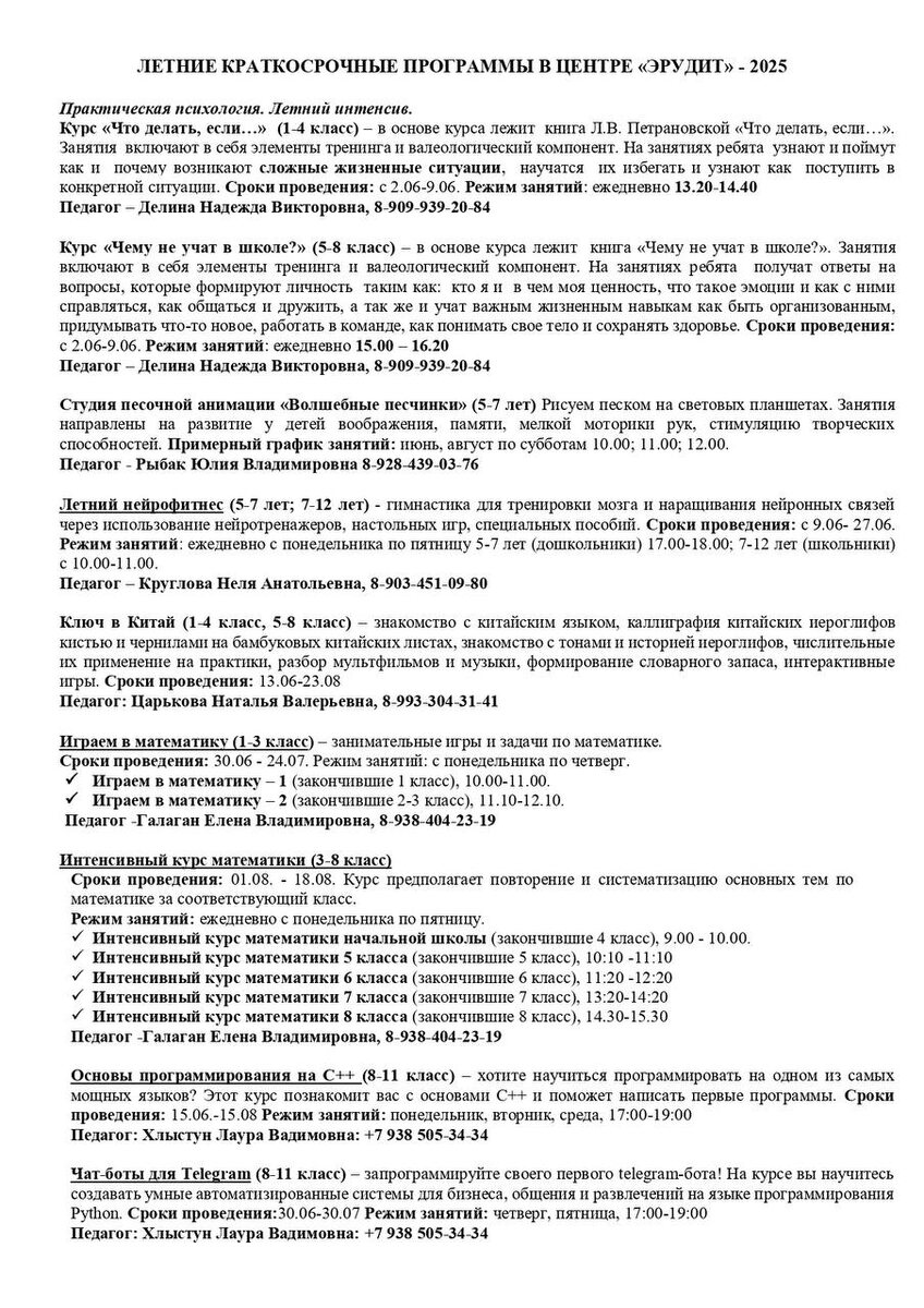 ☀️ ЛЕТО - 2025 ☀️ Ну и конечно - лето! ❤️ Скучать эрудитам мы точно не дадим! По всем вопросам можете смело обращаться к педагогам напрямую 😉 Даты проведения летних программ и время занятий - ориентировочные 🫶🏻
