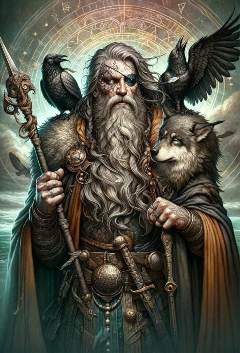 Из крови Имира, из инея веков, Восстал он – владыка богов и врагов. Сын Бора-исполина, Бестлы дитя, Взрастил он Асгард, мир из бездны творя. «Один – это ярость, Один – это свет, Тот, кто заглянул за пределы всех лет» --- Не просто бог – сама Судьба, Его лик в плаще и тумане: Гримнир – скрытый под маской, Бёльверк – злой для врагов, Харбард – седой перевозчик, Вещий – знающий срок свой. «Вороньим крылом осенён, Двуглазым был – стал одноглазым, Но видит сквозь время и ложь Тот, кто руны добыл ценою страданий» --- 1. Воин, но не как Тор Не молотом – копьём правит битвой, Не силой – умом побеждает. Он воин, но мудрость – его броня, И Гунгнир – лишь тень его воли. Девять ночей на древе мировом, Копьём пронзён, без воды и хлеба, Чтоб руны пали к его ногам, Чтоб песни стали оружием. В Вальхалле – пир, но не для живых, Там эйнхерии ждут Последней Сечи. Один их зовет, Один их хранит, Чтоб в Роковой День сразиться с тенью. |-----