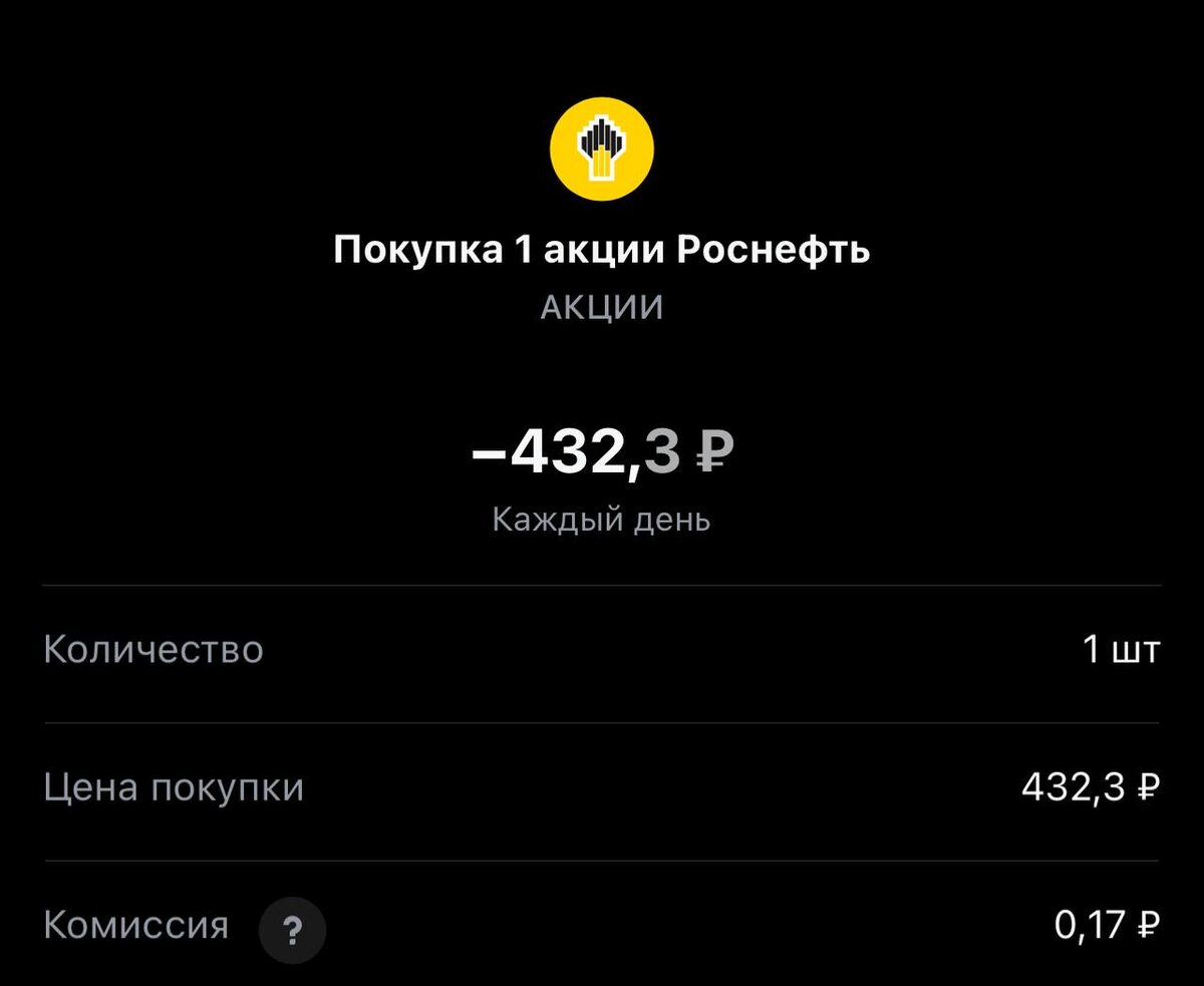 Привет коллеги! Покупка на сегодня #188, сделка с учетом оставшихся денег с прошлых сделок. Статистика портфеля на стороннем сервисе, можно посмотреть по "ссылке" Напомню это челендж с коллегами, каждый рабочий день пополняем брокерский счет на 250 рублей и инвестируем. Если возникли вопросы или есть не понимание, что делать. Задавайте «тут» Покупка #188 🟢 «Роснефть» 432.3 rub #ROSN 1 лот #каждыйсможет #челенджсколлегами ✈️ Стас Мироненко 📹Youtube | 📹Rutube