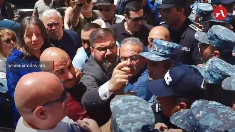 В МВД Армении заявили, что в ходе акций протеста у здания МИД Армении никто не задержан. Об этом в ведомстве сообщили корреспонденту Armenia Today. Акцию против визита главы МИД России Сергея Лаврова в Ереван параллельно его встрече с главой МИД Армении Араратом Мирзояном инициировали лидер партии «Во имя Республики» Арман Бабаджанян, глава Европейской партии Армении Тигран Хзмалян, правозащитник Артур Сакунц. Судя по видео с акции, потасовка между полицейскими и участниками протеста у здания МИД в Ереване произошла после того, как Бабаджанян поднялся на памятник Степану Шаумяну, нарушив правила общественного порядка, и отказывался спускаться по просьбе полиции.