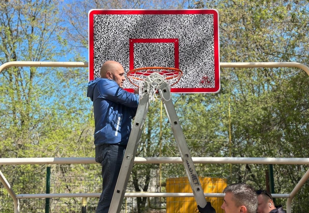 21 мая. /MEDIA TALK/. Юрий Сапожников помог благоустроить территорию на Советском проспекте, 131/2. Сегодня на спортплощадке были установлены новые баскетбольные щиты и сетки на футбольные ворота.