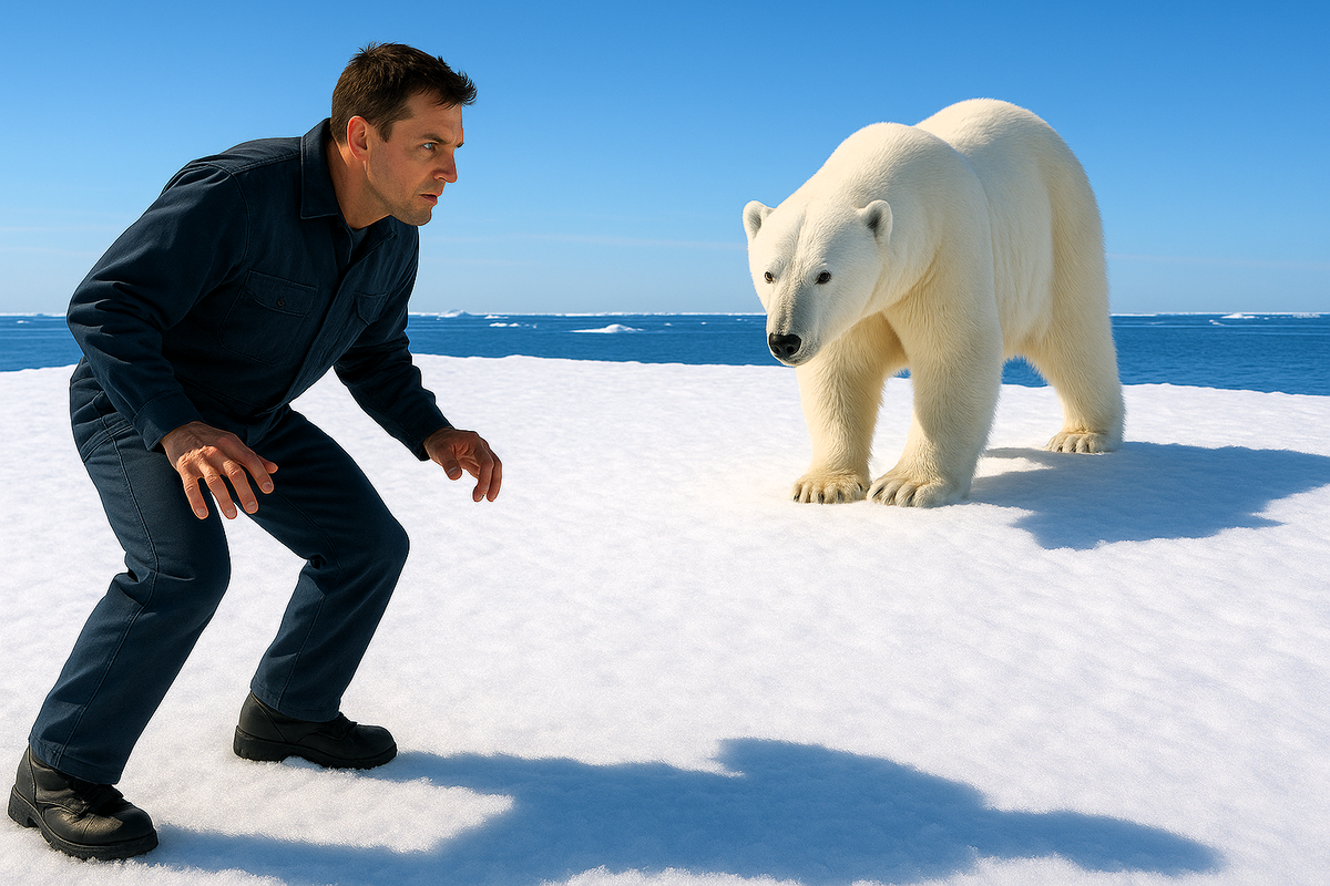 «Бууу!» — крикнул человек, полный ярости и страха. Медведь отступил, затем побежал. Человек погнался за ним до края льдины. Животное прыгнуло — и исчезло. Сергей продолжал кричать, размахивать руками, доказывая, что он здесь главный. Льдина дрейфовала, окруженная другими. Значит, медведи вернутся.