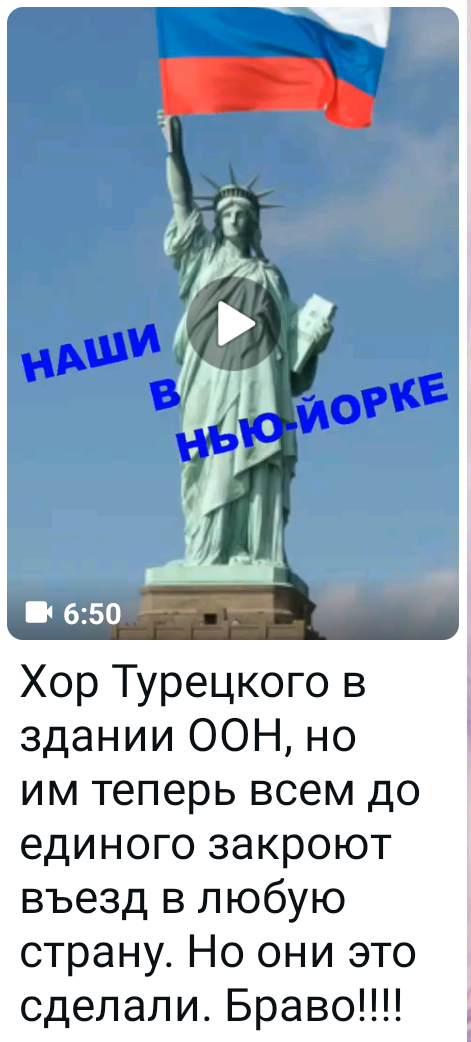 Искусственный интеллект, конечно помогает. Но он иногда смешит,а иногда и пугает. Вот только что прислала мне пожилая родственница видео. И с восторгом поверила, что это правда. Хор Турецкого дал жару в ООН! Я сразу же удивилась. Кто сможет без пропуска и проверок даже подойти к зданию ООН? У моей дочери подруга работает уже несколько лет в ООН секретарём или помощницей. Там даже нельзя к их служащим в гости прийти. Дома на территории ООН. Какой хор Турецкого? Если только пригласили спеть для дипломатов? Это возможно. Но тогда это официальный концерт, с проверенной программой и уж точно без фейерверков. Без протестных акций и двусмысленностей. Кстати, там иногда наши коллективы выступают. В ООН любят культурные мероприятия. Посмотрела и увидела, что прямо на выступление какого-то человека наложили видео с плясками хора Турецкого. Они там еврейские песни вперемешку с "О, Белла чао!" и Днем Победы поют. Пляшут, свистят.. Ну, обычный разлюля концерт. Почему-то на фоне знамениты