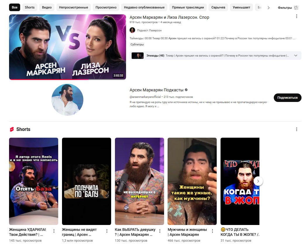 И почему у тебя всё ещё нет контент-завода, если ты бизнес, эксперт или просто не хочешь быть бедным "Мозг — это мясо, которое жрёт внимание. Контент — это нож и вилка." — условно Арсен Маркарян 👤 Кто такой Арсен? Если вы не знаете, кто такой Арсен Маркарян, поздравляю — вы либо только что вышли из комы, либо пытаетесь быть морально чище, чем алгоритмы TikTok. А теперь факты: 🧠 Инфобизнесмен, философ, провокатор, нутрициолог, биохакер, трикстер, и да — тот самый, кого пол-Рунета называет «инфоцыганом». 📲 Основатель секты… ой, простите — закрытого Telegram-сообщества за 1500₽ в месяц. 📹 И главное — человек, который выпускает 60+ видео в день, имеет 30+ YouTube-каналов и генерирует миллионный органический охват практически бесплатно. 🤯 "Контент — это Бог, а я его пророк" Маркарян не делает ставку на «один ролик в неделю». Он создал машину, которая делает его вездесущим, как налоговая в январе. Что у него есть: 1️⃣Более 30 YouTube-каналов Каждое утро — нарезки из подкастов, интервью