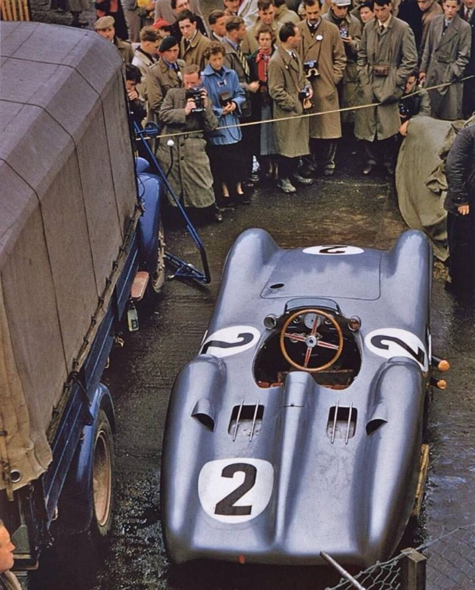 Mercedes W196 Streamliner под управлением Карла Клинга был представлен публике и прессе на трассе в Сильверстоуне в 1954 году. Гонку в тот день выиграл Хуан Мануэль Фанхио на своем Mercedes со стартовым номером 1. Модель с индексом W196 стала одной из самых революционных машин в истории Формулы-1. Она оснащалась 2,5-литровым восьмицилиндровым двигателем с прямым впрыском топлива, развивавшим мощность около 256 л.с., а позднее — до 290 л.с. Автомобиль был известен своим элегантным аэродинамическим кузовом, который закрывал колеса, минимизируя лобовое сопротивление. Это был один из первых гоночных болидов, использующих обтекаемый дизайн. Споры вокруг конструкций с открытыми и закрытыми колесами имеют долгую историю в Формуле-1. Машины с открытыми колесами традиционно доминировали в этом виде спорта с самого его основания в 1950 году. Такая конструкция уменьшает вес автомобиля и улучшает охлаждение тормозов, что особенно важно на высоких скоростях. Тем не менее, в начале 1950-х годов мод