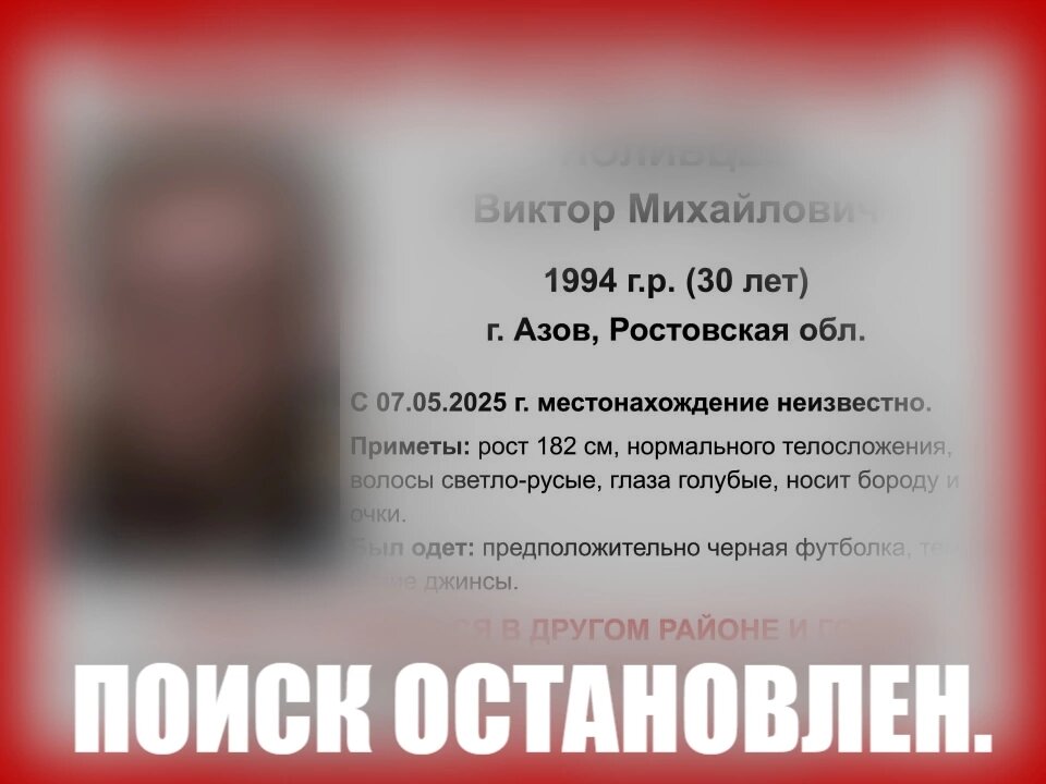 UPD. Поиск остановлен. Внимание! Пропал человек! #Поливцев Виктор Михайлович, 1994 г.р. (30 лет) г. #Азов, #Ростовская обл. С 07.05.2025 г. местонахождение неизвестно. Всех, кто обладает информацией о пропавшем, просим сообщить по телефону бесплатной горячей линии 88005501054 или 112. Если вы готовы помогать в поиске пропавших без вести, приглашаем присоединиться к телеграмм-каналу оповещения: t.me/poisk_161