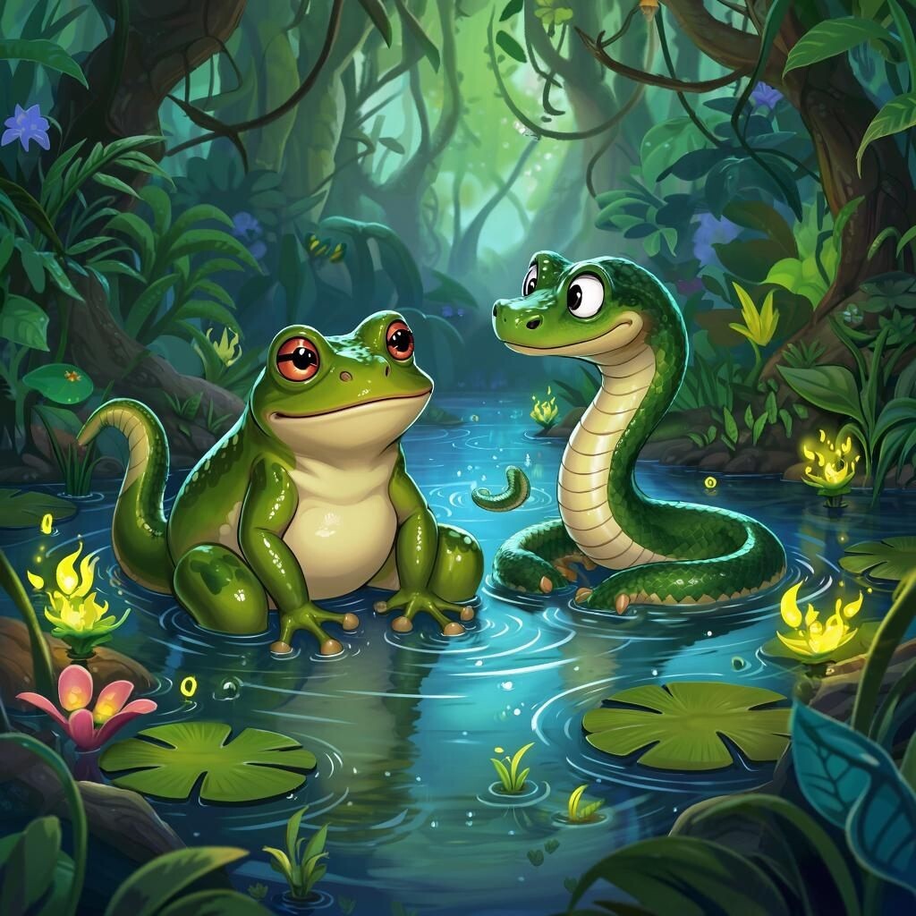 - Жили-были два друга — лягуш по имени Женуар и уж по имени Квачек. Родились и выросли они в одном большом болоте. У каждого была своя особенность: Квачек славился своей изысканной манерой говорить, и его имя красноречиво говорило само за себя — с детства жил исключительно среди квакающих соседей, потому звучал он словно чемпион болотных соревнований по хору.