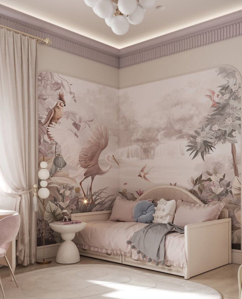 В этой комнате каждая деталь — как драгоценность в изящной оправе: изящные ножки-бусины мебели придают интерьеру лёгкую игривость, а туалетный столик с зеркалом станет местом для первых экспериментов с красотой🎀💄💅