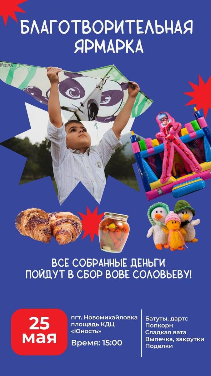 Туапсинский район, пгт. Новомихайловка ярмарка в поддержку Вовы, приходите пожалуйста поучаствуйте в судьбе сына 🙏