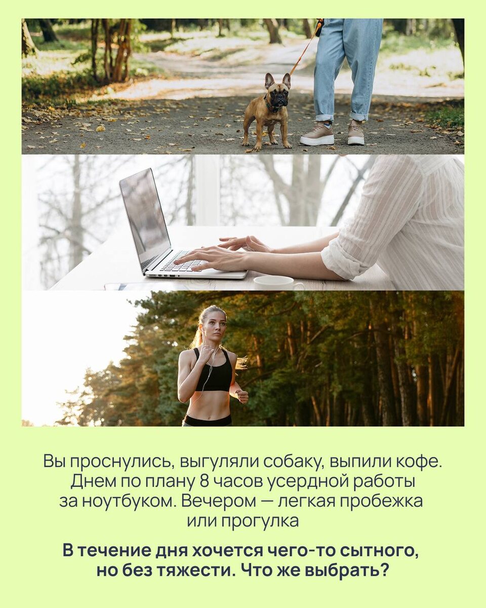 Знаете ли вы, что блюда в холодильнике могут многое рассказать об образе жизни хозяина? Эта идея работает и наоборот: привычный распорядок дня подскажет, какой рацион из нашего меню вам подойдет больше ➡️ Предлагаем потренировать дедуктивные способности и определить, какую норму калорий выбирают герои наших карточек. Возможно, в одном из них вы узнаете и себя