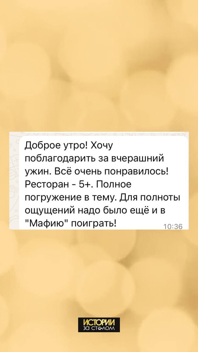 Мы благодарны за каждый ваш отзыв, спасибо, что выбираете «Истории за столом»