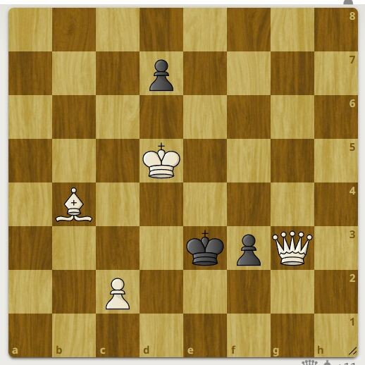 Две пешки у черных против слона, ферзя и пешки белых.