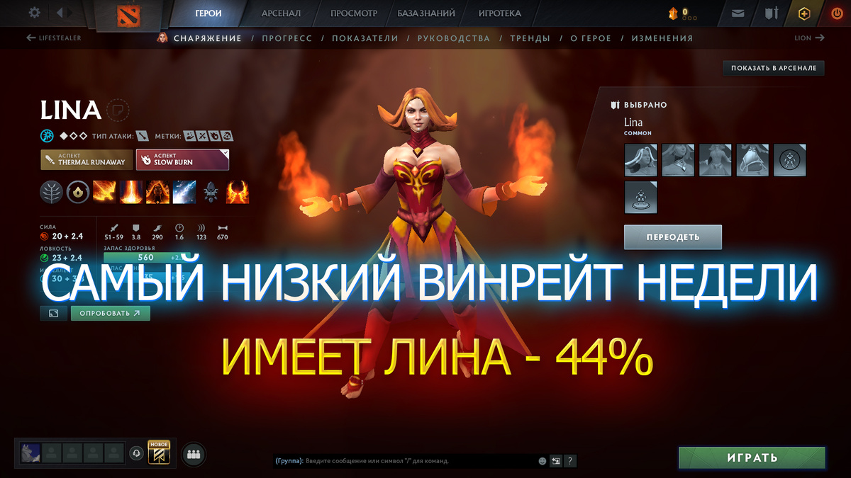 К слову не так давно, Лина занимала первую строчку героев по винрейту.
