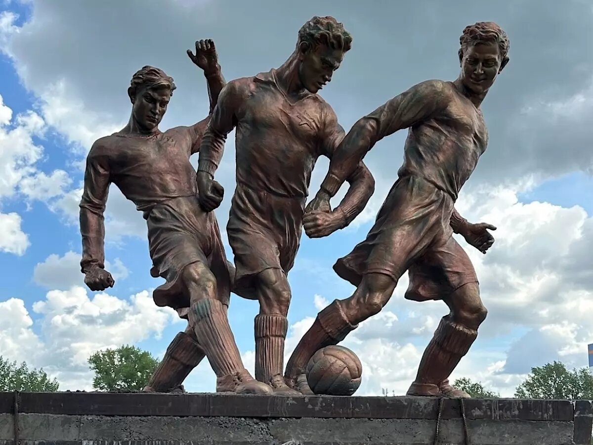 Теперь на территории красуется обновленная скульптура трех спортсменов. Напомним, что в середине октября на популярном городском стадионе проходили ремонтные работы. На территорию приехала специальная техника, после чего под снос пошли старые трибуны. Местные жители переживали, что демонтируют и известную скульптуру «Футболисты».