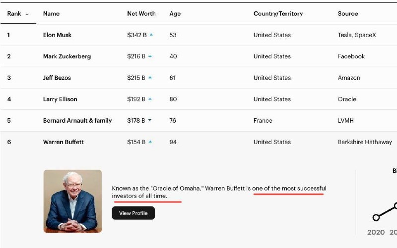 На пенсию в 95 лет!🫣 Нет, это не страшный кошмар тех, кто заранее не позаботился о своем финансовом будущем. Это реальность самого богатого и успешного инвестора в мире - Уоррена Баффета, который все-таки решил уйти на пенсию в свои 95 лет. Просто потому что может себе это позволить. Он входит в 10 богатейших людей мира и свой капитал создал благодаря инвестициям. Я был в шоке, когда вчера вел урок фин грамотности в школе: никто из ребят (10-11 лет) не знал, кто такой Баффет😱 Чему можно у него поучиться? Баффет - самый наглядный результат долгосрочных инвестиций. Были ли у него неудачные и убыточные годы? 📉 Да и не один (в таблице цифры в скобках). Но в среднем доходность его фонда Berkshire Hathaway составила 20% годовых. А за 60 лет эта цифра превратилась в рекордные 5 500 000% (накопленным итогом)! Если бы тогда вы вложили 1000$, то сейчас у вас было бы 55 млн $🔥 Вот, что дает время и дисциплина в инвестициях! И то, и другое есть в нашем закрытом клубе инвесторов