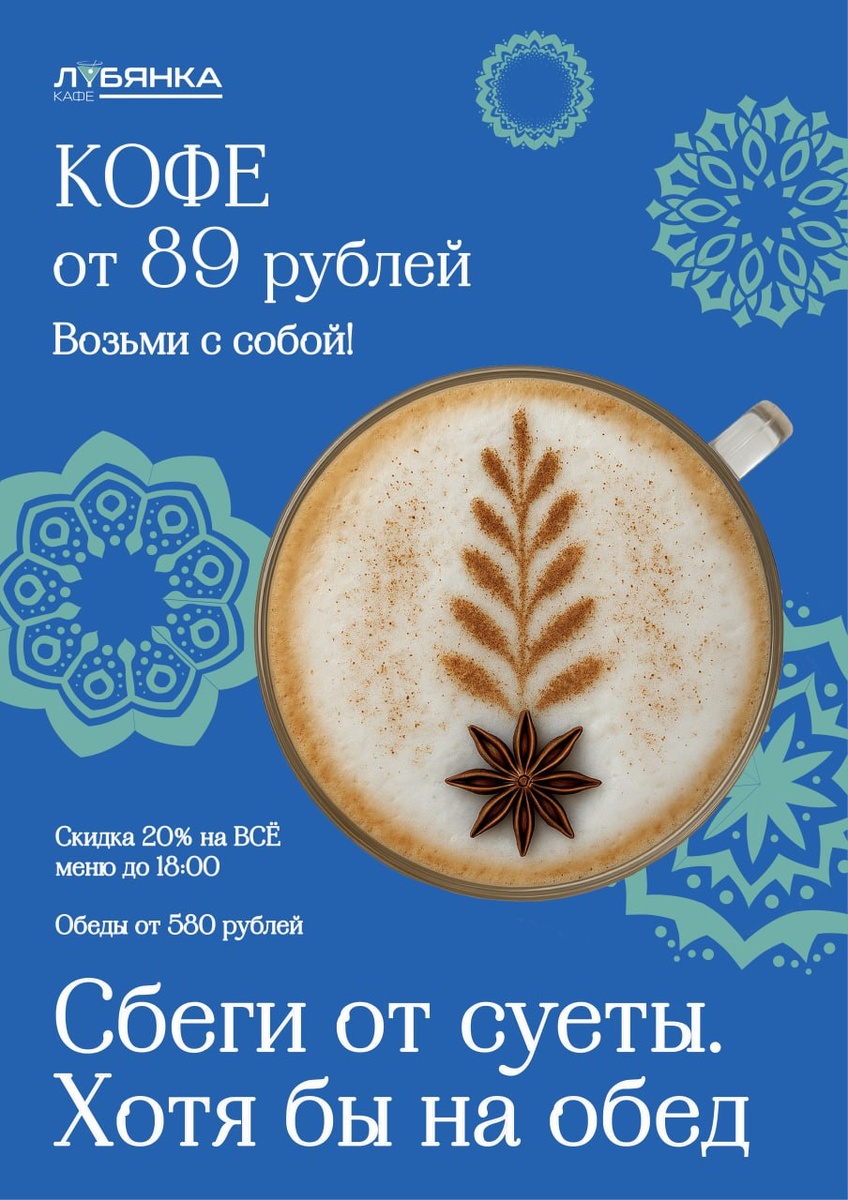 Сбеги от суеты. Хотя бы на обед ⚡️У нас обновления в будние дни: ✨ Кофе от 89 рублей (и можно взять с собой!) ✨ До 18:00 скидка 20% на всё меню🔥 ✨ А обеды теперь от 580 рублей! 📍Большая Лубянка, 13/16с1 (м.Лубянка / м. Чистые пруды) 📲 Бронь столов: +7 (495) 623-93-14