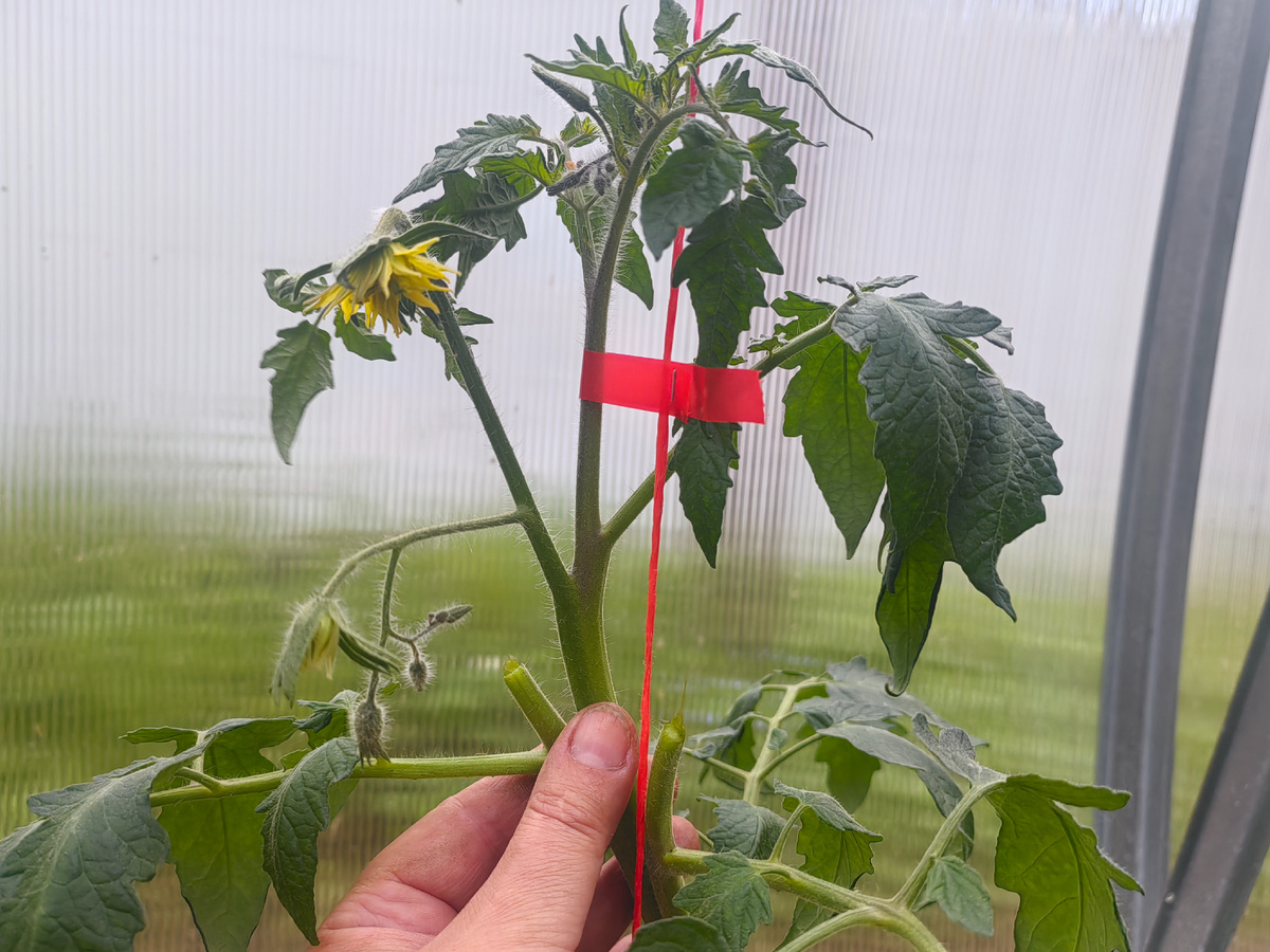 На тот случай, если вы, как и я планируете вести томаты в один стебель, объясняю. Внимательно рассмотрите развилку.