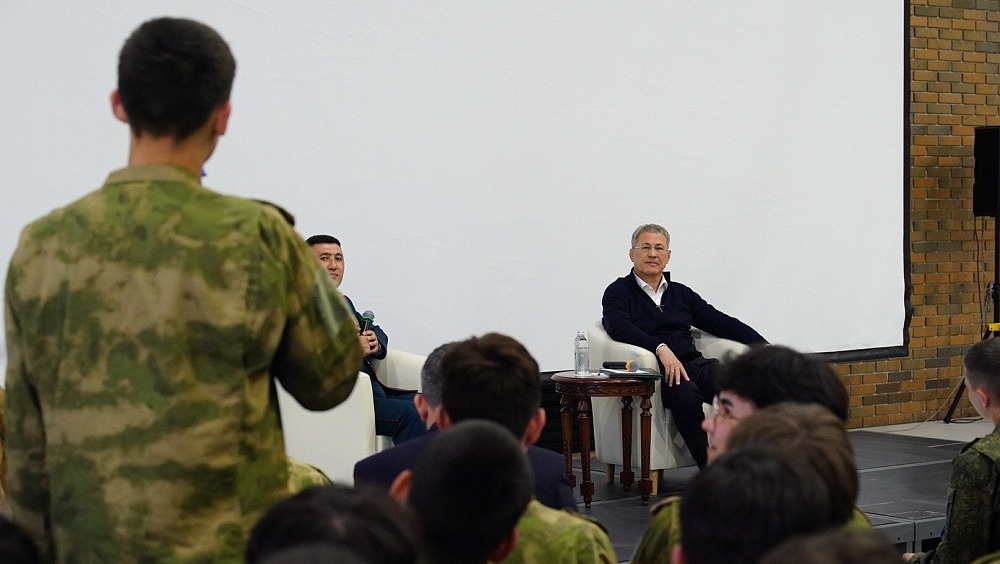 Глава Башкирии Радий Хабиров провел встречу с учащимися десятых классов школ республики. Ребята проходят учебные сборы на базе военно-патриотического парка «Патриот» имени Героя России Максима Серафимова. В мероприятии приняли участие более 260 школьников из Абзелиловского, Благоварского, Архангельского районов, Межгорья, а также учащиеся других республиканских школ. Руководитель региона поприветствовал ребят и рассказал о парке «Патриот». Он отметил, что парк носит имя молодого десантника, который погиб, спасая товарищей, закрыв телом гранату. Радий Хабиров подчеркнул, что память о герое чтут, и запланировано открытие памятника в его честь. Радий Хабиров также отметил, что учебные сборы являются для десятиклассников важным этапом взросления. Он пояснил, что цель этих пяти дней — дать ребятам полезные навыки, необходимые настоящему мужчине. Он подчеркнул значимость патриотического воспитания и заверил, что этому направлению будет уделяться особое внимание. Также он добавил, что цель вс