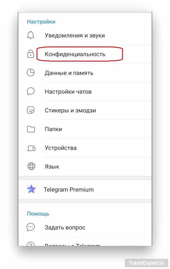- Нажмите «Конфиденциальность».