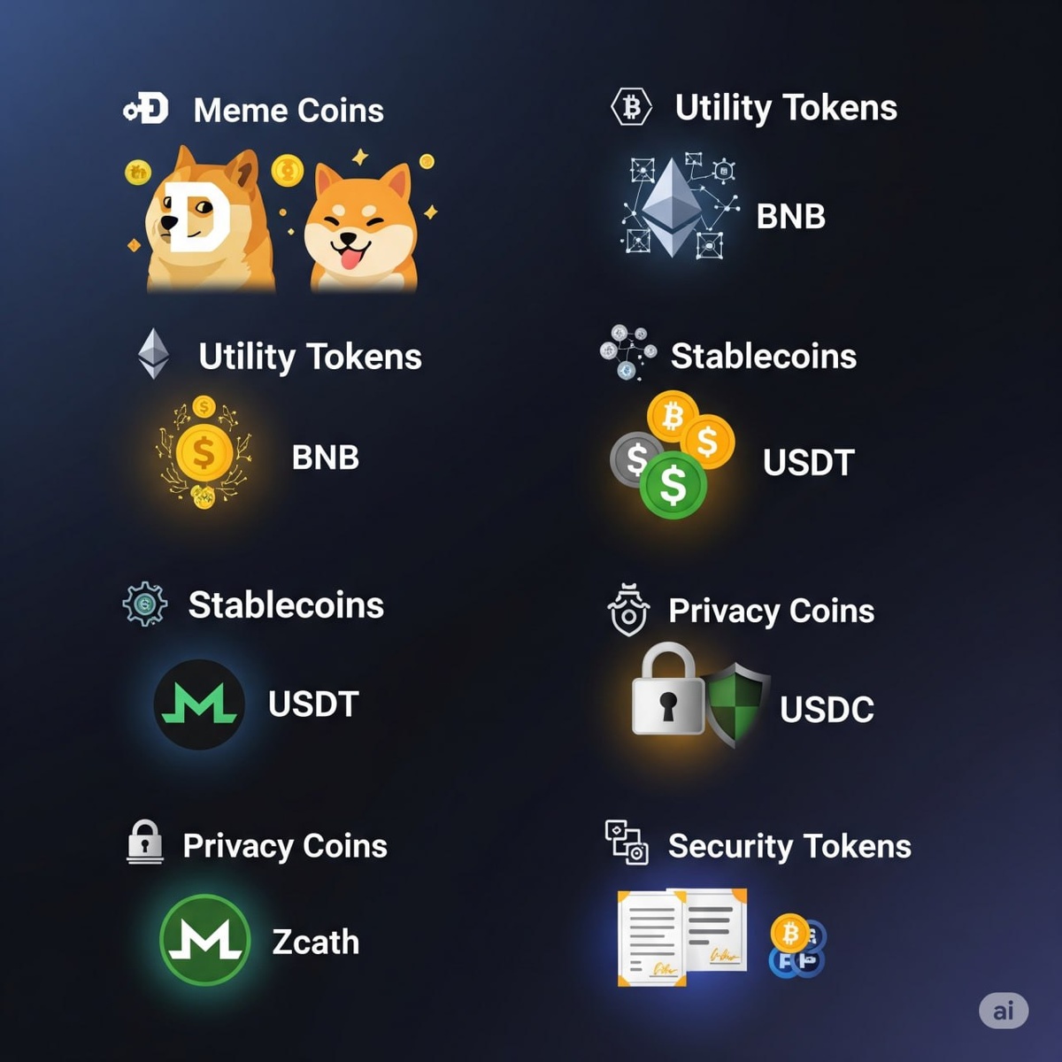 Крипторынок огромен и разнообразен: одни монеты созданы для развлечения, другие — для реального использования в блокчейн-экосистемах. Давайте разберёмся, какие виды криптовалют существуют и какие подходят начинающим инвесторам. Что это? Криптовалюты, ставшие популярными благодаря мемам и соцсетям. Часто создаются как шутка, но могут приносить огромную прибыль (или убытки). Примеры: ✅ Плюсы: ❌ Минусы: 💡 Для кого? Для тех, кто готов к спекуляциям и краткосрочным сделкам. Что это? Токены, которые дают доступ к функциям блокчейн-платформ: оплата комиссий, голосование, стейкинг и т. д. Примеры: ✅ Плюсы: ❌ Минусы: 💡 Для кого? Для долгосрочных инвесторов, верящих в технологию. Что это? Криптовалюты, привязанные к фиатным валютам (например, USD) или золоту. Примеры: ✅ Плюсы: ❌ Минусы: 💡 Для кого? Для трейдеров и тех, кто хочет избежать волатильности. Что это? Токены, представляющие долю в реальных активах (недвижимость, акции компаний). Примеры: ✅ Плюсы: ❌ Минусы: 💡 Для кого? Для консерват