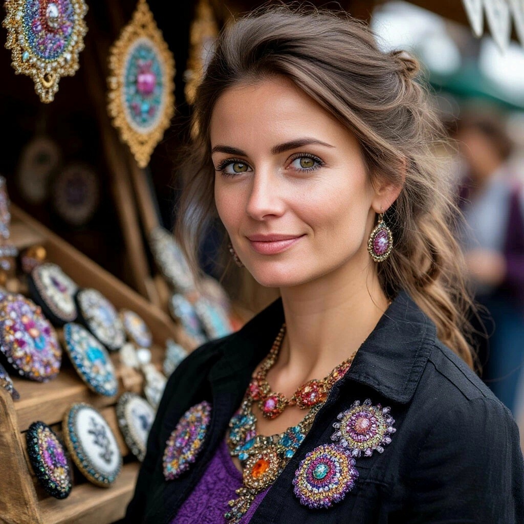 Подготовка к ярмарке превратилась в настоящий марафон. Аня создала целую коллекцию — не только броши, но и серьги, кулоны, даже несколько колье из бисера и вышивки. Миша помог сделать подставки для украшений из картона и ткани, а дети с восторгом клеили ценники.