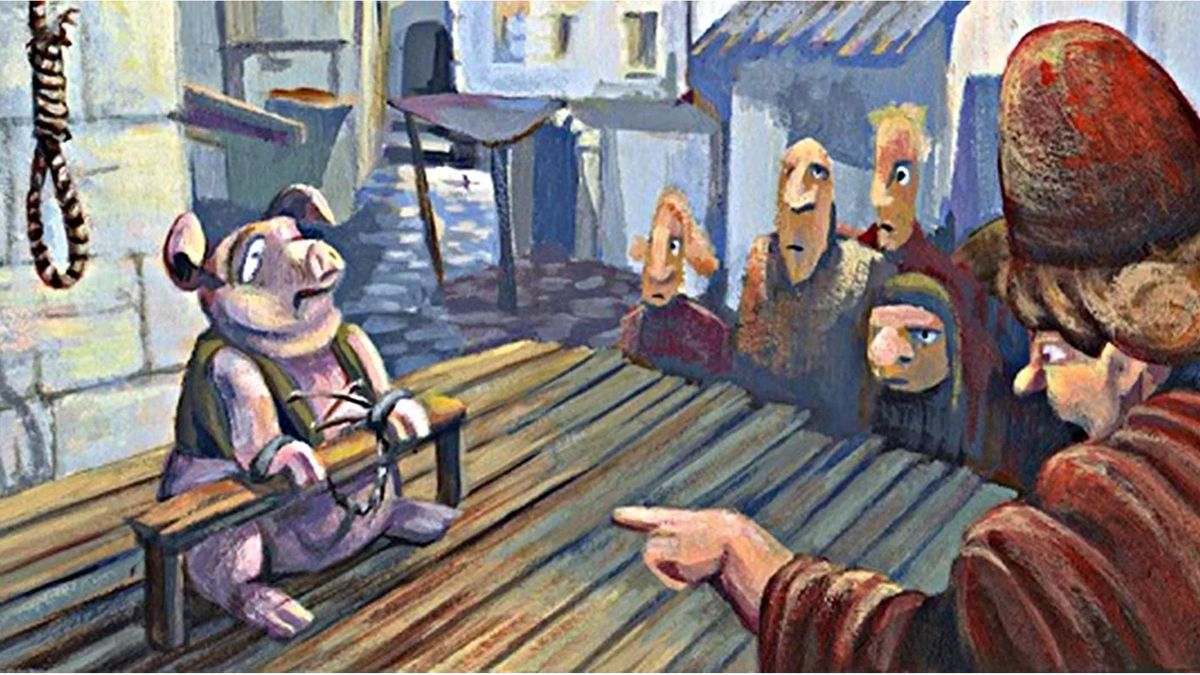 Когда свинья была признана виновной в убийстве. В Средние века правосудие, как и многое другое, было весьма специфическим. Мы привыкли к тому, что судили людей, но в те времена на скамью подсудимых вполне могли попасть петух, корова или даже целая стая крыс. Добро пожаловать в мир средневековых судов над животными — абсурдных, жутковатых и невероятно интересных! Самым известным примером «животных-преступников» является, пожалуй, убийство, совершённое свиньёй. Да-да, вы не ослышались. В Средние века свиньи часто разгуливали по улицам городов и деревень, и порой их поведение приводило к трагическим последствиям. Представьте себе: 1386 год, Франция, город Фалез. Свинья нападает на маленького ребёнка, наносит ему смертельные раны и убегает. Жители возмущены, и начинается полноценное судебное разбирательство. Свинью ловят, надевают на неё человеческую одежду (чтобы подчеркнуть её «человеческую» ответственность) и приводят в суд. Суд проходит по всем правилам: есть судья, адвокаты (как со ст