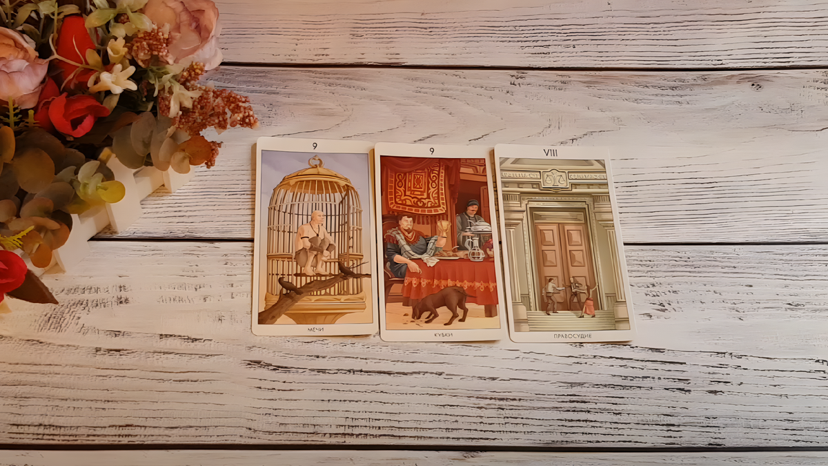 Почему так важно действовать сейчас? Карты показывают Девятку Жезлов и Пятерку Мечей. Девятка Жезлов говорит, что сроки поджимают. Вы стоите на пороге перемен, но если будете медлить, ситуация может выйти из-под контроля, как пожар, который разгорится и оставит вас с сожалениями. Вы не бессильны, как вам кажется, и не слепы — у вас есть все, чтобы двигаться вперед. Пятерка Мечей предупреждает, что бездействие может привести к потерям, к чувству поражения. Если вы не решите проблему сейчас, она будет свербить, как заноза, и со временем станет только хуже. Но хорошая новость в том, что у вас есть шанс выйти победителем, если вы соберетесь с духом и сделаете шаг. Тройка Кубков и Десятка Пентаклей подтверждают, что победа близка. Вы не просто решите проблему, но и отпразднуете это событие. Вы будете довольны, потому что закроете эту главу своей жизни и сможете двигаться дальше без груза на сердце. Это будет не просто выход из клетки, а настоящий прорыв, который принесет вам радость, стабильность и внутренний покой.