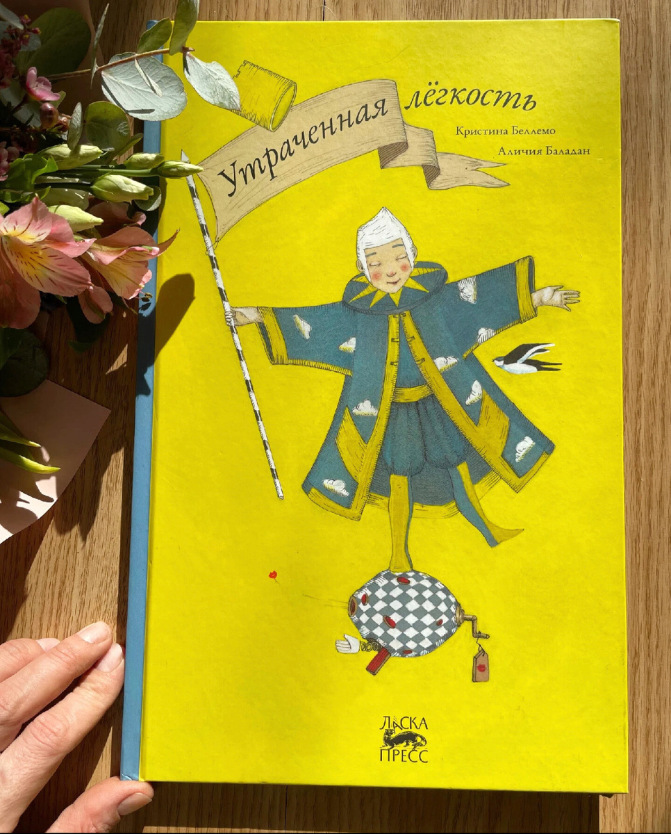 Детская книга, которая сейчас очень актуальна, мне кажется. Когда я прочитала аннотацию, сразу захотелось взять. Ну и я взяла. Книга до мурашек на самом деле. История такова: Замок, существующий на облаке, парящем в небесах, однажды начинает медленно падать. Жители в ужасе. И король приходит к прекрасному решению: надо скинуть все излишества на другое облако, где никто не живёт. Жители скидывают то, что тянет к земле: это неискренние слёзы, насосы, раздувающие гордыню, машинки для разглаживается морщин, морозилки для ледяных поцелуев, грязные слова, косые взгляды и кривые ухмылки, да много всего. А что же осталось? То, что поднимает к небесам — мечты, желания и чувства. Но чтобы не улететь слишком высоко, жители привязали свой замок к облаку, на которое всё сгрузили. Автор книги: Кристина Беллемо, писательница из Венеции, а художница — Аличия Баладан. По стилю иллюстрации очень похожи на средневековые рисунки, на мой взгляд. Книга рекомендуется для младшего и среднего школьного возра