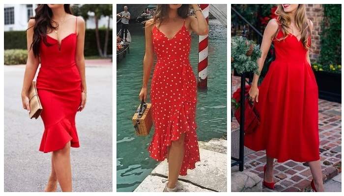 Красный цвет — вечная классика, не теряющая своей актуальности. Специалисты в области моды обожают использовать алые оттенки для создания уникальных и запоминающихся нарядов в различных стилях. Вот один из элегантных образов: красное платье с асимметричным подолом и изысканными кружевными вставками, дополненное чёрной кожаной сумкой и строгими тёмными босоножками на высоком каблуке с изящными перемычками. Красный платье-халат с некрупным цветочным орнаментом — обязательный элемент гардероба для женщин всех возрастов. Эту яркую модель можно носить как в повседневной жизни с кроссовками, так и сочетать с элегантными лодочками на высокой подошве, создавая завершённый образ для торжественного мероприятия. Вот такой комфортный образ для летнего сезона стилисты составили с помощью миди сарафана с плиссировкой алого цвета на тонких бретельках, шлепанцев и кожаного клатча коричневого цвета. Весной и летом на пике популярности ярко-красные платья с юбками плиссе в благородной миди длине. Наряды