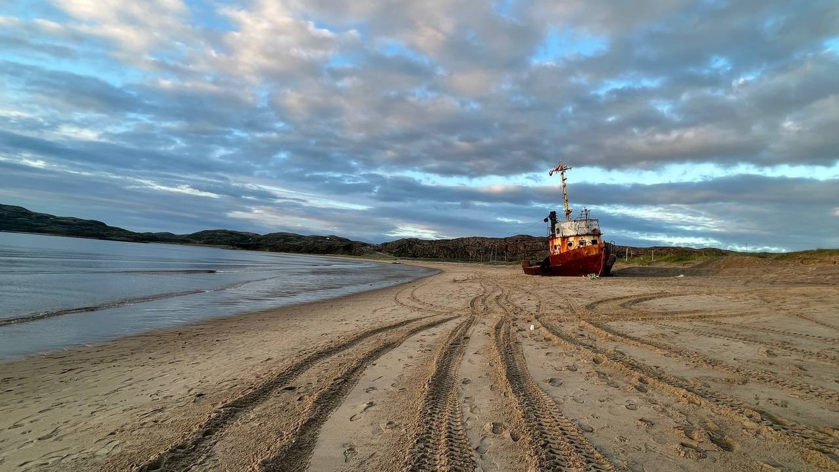 Териберка — это место, где северный ветер рисует узоры на воде, а старые корабли, выброшенные на берег, будто застыли во времени. Здесь вас ждёт кладбище кораблей, где ржавые остовы судов рассказывают истории былых штормов, и пляж «Яйца дракона» с гладкими валунами, отполированными волнами.