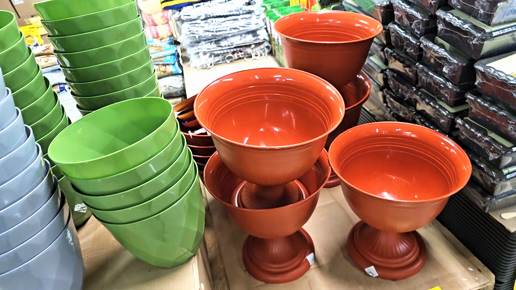 Я пришла сюда ещё и из-за вот этих вазонов.Вазон 12 л .У меня таких два для бегоний.И ещё один горшок большой. И вот мне не хватило одного вазона. И вот такие ещё горшки для цветов 4,5 л 127 руб зелёные и серые с поддоном.Может тоже кому надо Ещё интересные ящики балконные можно сажать тоже цветы не только на балконе но и на даче. Если не было бы вазонов я бы купил эти ящики.как бы плетёные. Красивые 172 руб Очень тоненький газон искусственный."Трава"Кто-то меня спрашивал можно ли положить как коврик. Пойдёт или нет.Нет на коврик он не подойдёт.Очень тонкий. 746 руб 2 м на 1 м и 16 мм толщина. Яркие лейки 171 руб красные с жёлтыми рассеивателям Салфетки универсальные 10 штук 30 см. Разные.Розовые и тёмно-синие и бежевые и голубые и серые всякие разные 99 руб Давно я не показывала посуду. Здесь есть миски объём 5,5 л 314 руб и 6 л 214 руб. Одна более глубокая а другая помельче. Сковороды 856 руб диаметр 26 см. Без крышки. Очень хорошие сковороды А это кастрюли кастрюли со стеклянной к