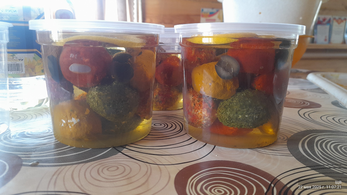 Вчера начала писать. Да так и не закончила. Сначала шевр в банки сложила,маслом залила. С пяти литров получилось две с половиной банки. Не так, по сути и много...
