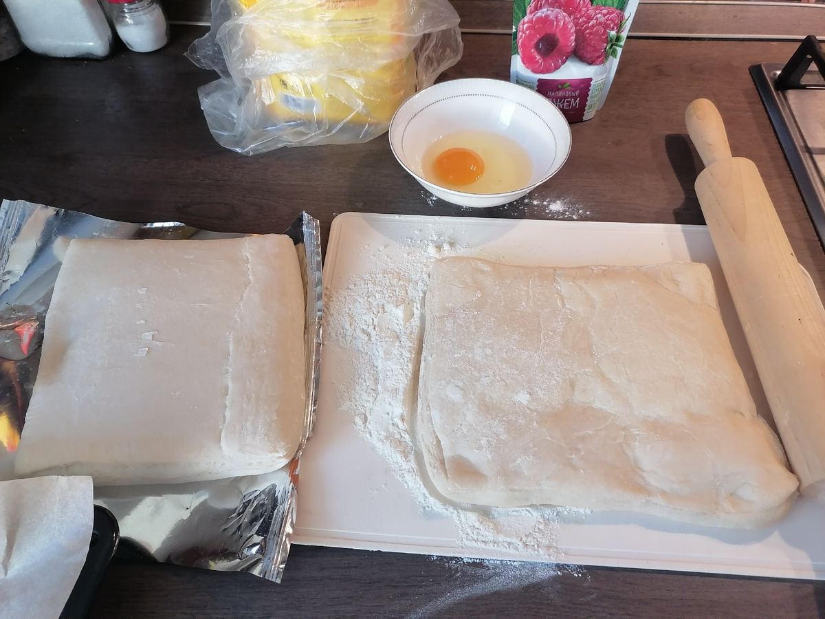 Здравствуйте друзья и гости нашего канала! Сегодня хочется с Вами поделиться одним простым и очень быстрым приготовлением круассанов (рогаликов) с малиновым джемом из слоёного дрожжевого теста. Круасса́н (фр. croissant — «полумесяц») — небольшое мучное кондитерское изделие, булочка в форме полумесяца (рогалика) из слоёного теста. Обе булочки готовят в форме полумесяца, но все же в них есть различия. Рогалики меньше по размеру, а круассаны — более загнутые. 🥐 Но у нас будут прямые. Круассаны выпекают из слоеного теста, а рогалики из дрожжевого или песочного. 😉 Ингредиенты: Подготавливаем наш противень, используем силиконизированный пергамент. В первую очередь нам необходимо раскатать один пласт теста в одну сторону и нарезать из него треугольники. Затем наносим малиновый джем. После начинаем с широко края теста каждый кусочек сворачивать в трубочку и выкладывать на противень. Повторяем процедуру приготовления и с вторым пластом теста. 😉 Затем смазываем их яичком и даём подняться