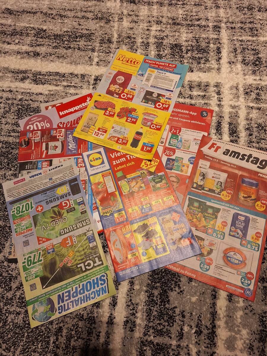Хочу рассказать и немного показать, как мы ориентируемся в выборе продуктов. Которые закупаем раз в неделю в основном это происходит по пятницам. Жена пишет заранее список что нам надо на следующую недели, и мы определяем от этого куда мы поедем. Супермаркетов в нашем маленьком городке предостаточно, только продуктовых я насчитал 7 штук. У каждой семьи есть свои любимые супермаркеты в которых они в основном закупаются .У нас тоже в списке 2 любимых супермаркета в которых мы в основном и покупаем продукты на всю неделю .Наши любимчики это ALDI Nord и NETTO .Так же в нашем городке есть небольшой русский магазин ,но мы там бываем очень редко и в основном что мы покупаем в русском магазине ,это каши ,гречневая ,овсяная ,перловка и т.д. и очень редко можем купить скумбрию копчёную или селёдку .Остальное там конечно качество не очень ,да и основной товар производится в Польше под видом что он произведён в России .Конфеты ужасного качества ,да и прочее тоже .Иногда жена берёт халву и покупае