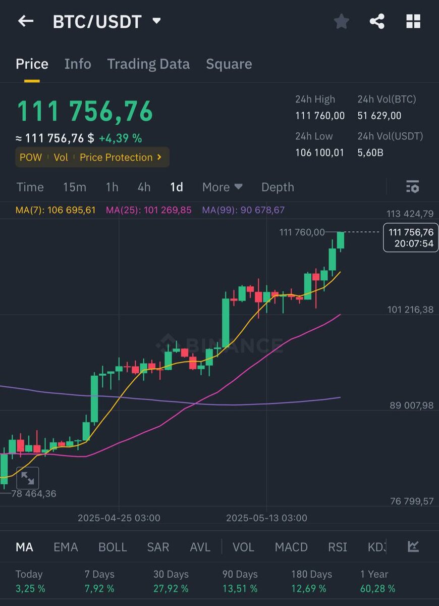 💸Биткоин впервые преодолел отметку в $111 500, установив новый рекорд. Будь с Maak 🆕