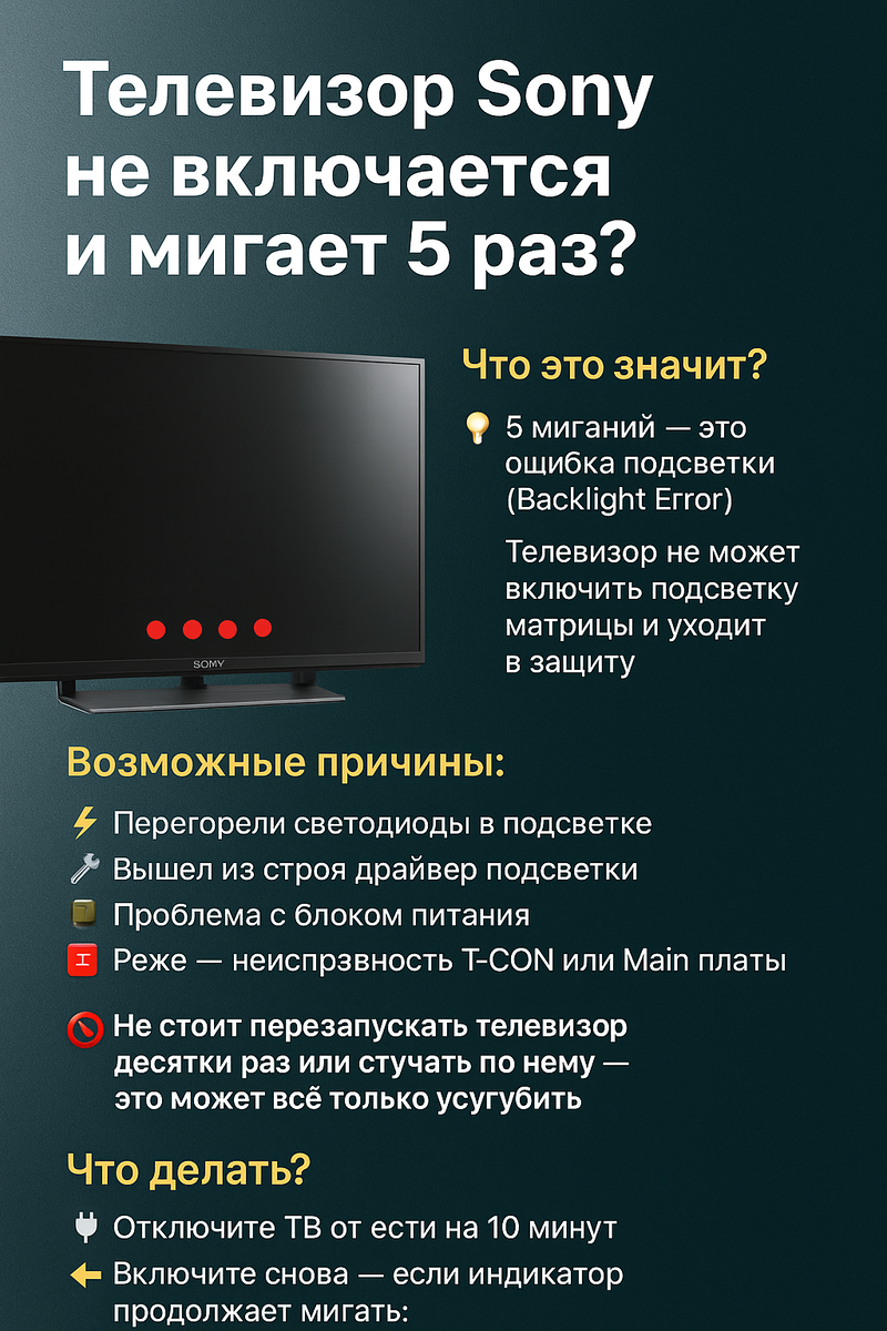 Телевизор Sony не включается и мигает 5 раз? Рассказываем, что это значит!