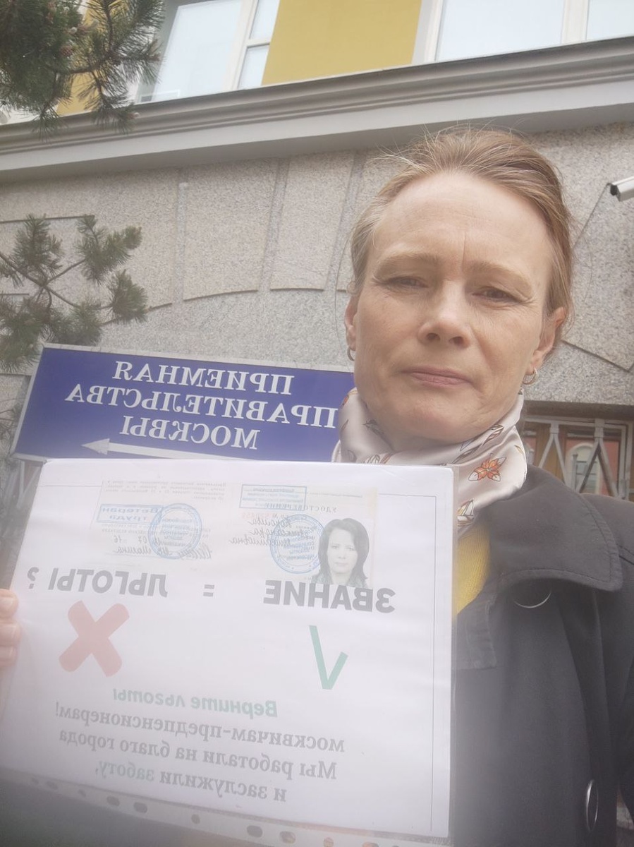 Сегодняшний "круглый стол" в МГД, проводимый по инициативе фракции КПРФ, лишь вершина айсберга сопротивления гармонизации московских пенсионеров. Особое место в том, что скрыто, заняли одиночные пикетЫ Александры Михайловны Королевой, @StoKorolev. Наверное, мало кто будет спорить, что такой поступок в наше время можно сравнить с "первым подняться из окопа", и говорит он о гражданском мужестве представительницы прекрасной половины. Пикет удался на славу, встала прямо перед входом в приёмную ПМ, проходящие служащие опускали глаза, едва завидев меня с плакатом, только два солидных чиновника ( как мне показалось) , поровнявшись, ознакомились с содержанием постера. Полиция заинтересовалась, сотрудник просил переместиться на Тверскую 13, ввиду того, что я мешаю входить служащим в здание. (Явно его просили об этом, кто не выяснила) Разговорились, обещала никого за рукава не хватать🤣 У служащих полиции есть соц. карта, по ней бесплатный проезд. Посочувствовал... Очень вежлив и доброжела