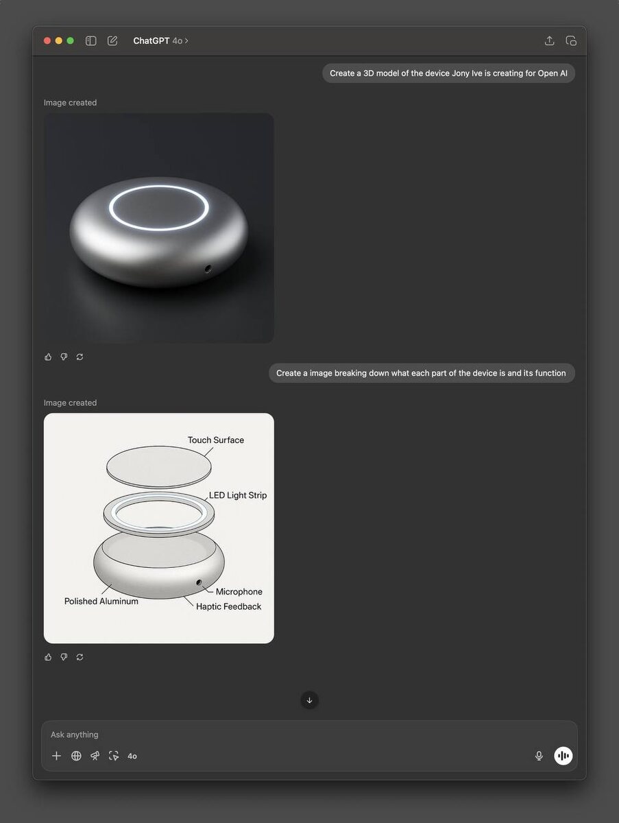 Конкурс «It's revolution, Johny» Джони Айв будет создавать гаджет будущего в Open AI. Предлагаю «Долгий конкурс» . В комментариях вы можете оставлять ваши идеи, эскизы или визуализации. Когда Open Ai представят гаджет, сравним и выберем победителя. Понравилась идея спросить у ChatGPT. Если он реально «слил» идею, будет смешно.