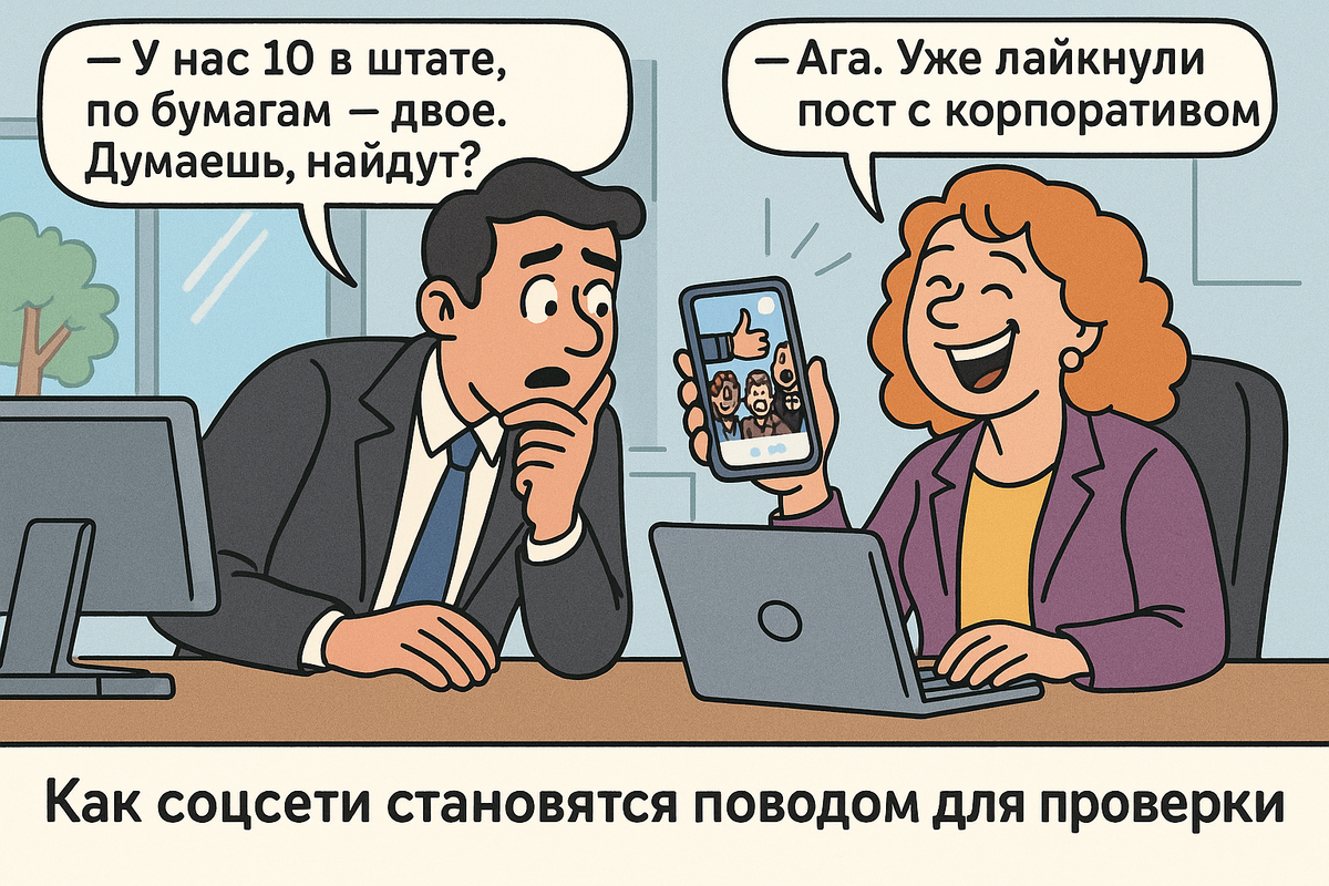 “У нас работают 10 человек!” — но в ФОТ числится два? Это уже повод. - Подмена трудовых отношений. Например наемный сотрудник работает в статусе "самозанятого".