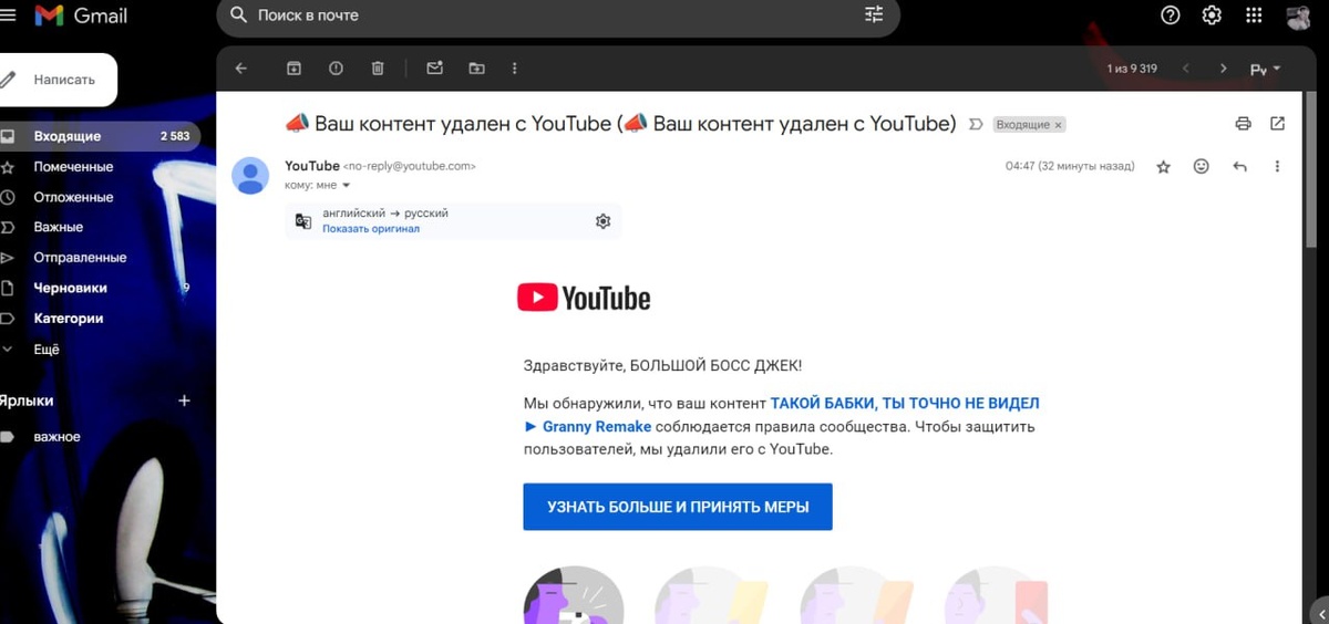 второй раз в моей жизни такое, какие то челики нашли мем где мужик прыгает в окно погнали бля чет типо того прям перед др кто то сделал подлость и кинули страйк на канал, круто, единственное сообщество где я соблюдаю правила ютуб и очень дико расстроило отношение за мем получить, прям намеренно сделали 😔