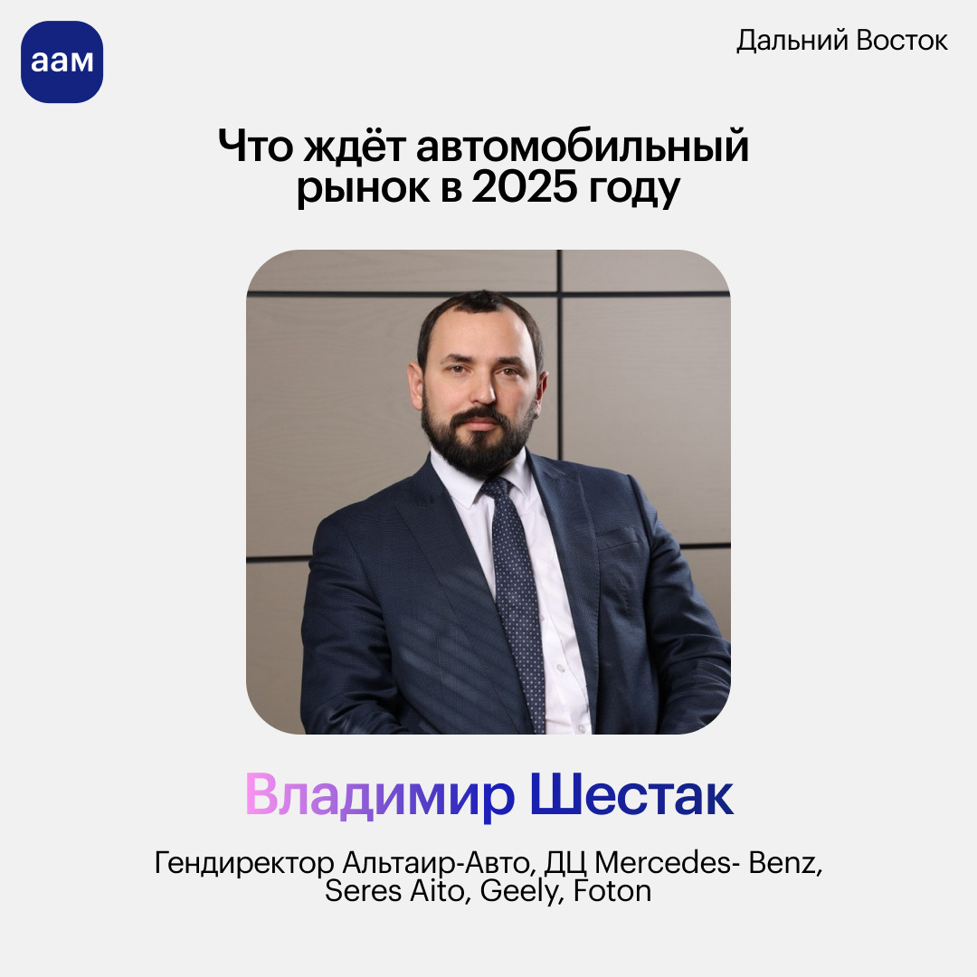 О рынке авто, продажах и покупательской активности в 2025 году интервью Ассоциации автомаркетинга с генеральным директором Альтаир-Авто, ДЦ Mercedes-Benz, Seres Aito, Geely и Foton во Владивостоке Владимиром Шестаком. Автомобильные рынки России показывают падение продаж. Это касается новых легковых (на 25% ниже прошлого года) и б/у автомобилей (на 11% ниже). Статистику приводят эксперты Автостата. — Согласны ли вы со статистикой Автостата про падение рынка? Расскажите о своём опыте продаж в 2025 году. Авторынок имеет существенную региональную специфику, учитывая масштабы нашей страны. По Сибири и Дальнему Востоку провал ещё больше. Согласно отчету Европлана, например, объем лизинга легковых автомобилей сократился на 59% относительно того же периода прошлого года. [Во Владивостоке] Мы фиксируем радикальное снижение трафика в дилерских центрах, существенное затоваривание складов и отрицательную рентабельность по китайским автомобилям. — Какие основные причины падения продаж? Происходили