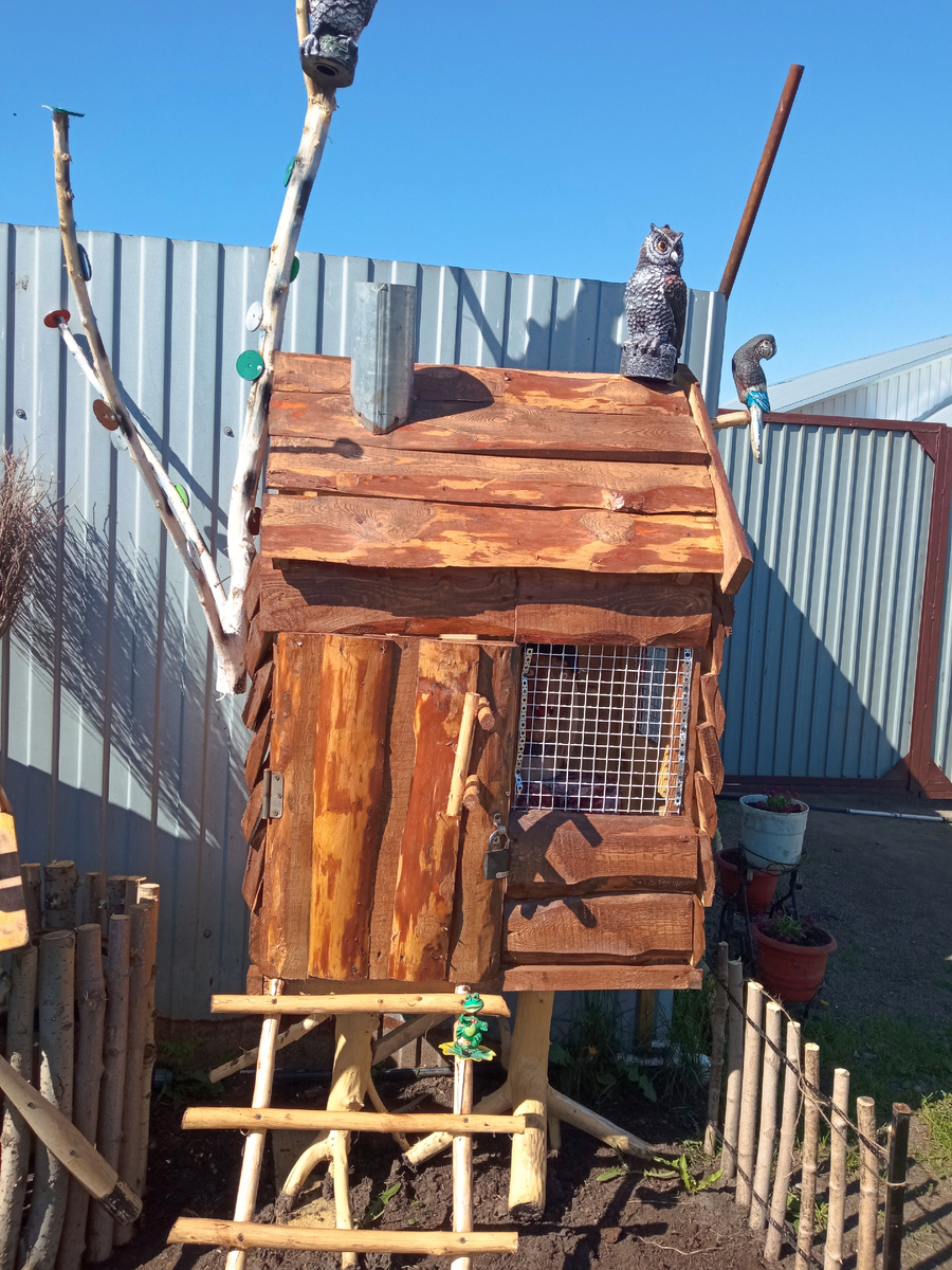 Хотели продолжение сказки? Нет? А оно есть. Пошла я к свёкру, смотрю, а бабушка Ягуша то взаперти сидит и зло на меня глядит! Начало тут. Дверь на замке, на окнах решетки, видимо хорошо с Лешим погуляла. Видите, в ступе стульчик? Видимо уходя, его мебель прихватила. И дралась наверное, битой махала, раз она тут же стоит. А ещё калитку с петель сорвала. Это внучка Кикиморы наверно. Вот зачем она ее головой в колодец заставила окунуться?! Тут у меня всего два варианта: 1) было вчера так хорошо, что сегодня так плохо и после зелья головушка трещит так, что охладиться надо, водицы испить; 2) достает мячик, ну из серии " тише Кикимора не плачь, не утонет в колодце мяч". А может это и не Кикимора вовсе? А бабуля через модный бутик проходила, хотела себе новый образ, притащила манекен, а вот размер не ее оказался. А вам какой вариант ближе? P.S. Все ж какая богатая фантазия у человека! Хоть б не напакостили, не сломали.