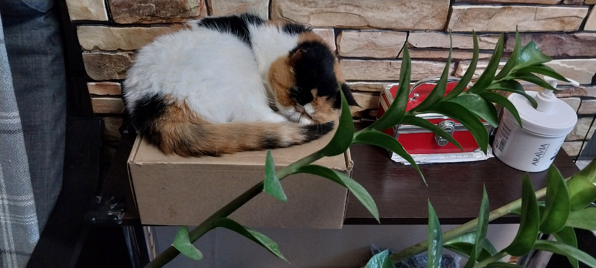 Кошки — такие везучие товарищи, где калачиком не свернутся, там и заснут. Главное, чтобы удобно было. А что кошке удобно, то человеку не понять. Вот, например, наша Соня вот уже 2 недели спит на коробке из-под банного набора, который папе на работе подарили. Сам набор, кстати, ей тоже понравился. Там были суконные варежка и будёновка, мятное мыло, веник из дубовых веток, мешочек ароматных трав, чтобы запаривать для пущего банного духа. Коробка пуста, но запах сохранила, может, потому Соне и нравится коробочка. Только ей и папе ещё. Он смеётся: - Завтра с Соней в баню идём. А баня у нас есть, ей уже 45 лет, ещё дед рубил. Да, про баньку так у нас и говорят: "рубил", а не строил. Также и с деревянными домами. А Соня спит. Интересно, что ей снится? Наша Пёся. Эта мадама обожает всё мягкое, например, диван. А ещё так и норовит под одеяло к своим человекам залезть и там дремать. Саймон предпочитает спать в лежанках и на подстилках. Ему так спокойнее, человеки не сядут и уступать место н