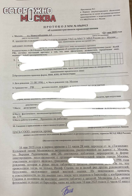 Π ΠΠΎΡΠΊΠ²Π΅ ΡΠ°Π·Π³ΠΎΡΠ°Π΅ΡΡΡ ΡΠΊΠ°Π½Π΄Π°Π» Π²ΠΎΠΊΡΡΠ³ Π°ΠΊΡΠΈΠΈ Π°ΠΊΡΠΈΠ²ΠΈΡΡΠΊΠΈ Π‘ΠΎΡΡΠΈ Π.! 28-Π»Π΅ΡΠ½ΡΡ Π΄Π΅Π²ΡΡΠΊΠ° ΠΏΠΎΠ»ΡΡΠΈΠ»Π° Π°Π΄ΠΌΠΈΠ½ΠΈΡΡΡΠ°ΡΠΈΠ²Π½ΡΠΉ ΠΏΡΠΎΡΠΎΠΊΠΎΠ» ΠΏΠΎ ΡΡΠ°ΡΡΠ΅ 20.2 ΡΠ°ΡΡΡ 5 ΠΠΎΠΠ (βΠΠΈΠΊΠ΅ΡΠΈΡΠΎΠ²Π°Π½ΠΈΠ΅β) Π·Π° ΡΠ°Π·ΠΌΠ΅ΡΠ΅Π½ΠΈΠ΅ ΠΏΠ»Π°ΠΊΠ°ΡΠΎΠ² Ρ ΡΠΈΡΠ°ΡΠ°ΠΌΠΈ ΠΡΡΠΈΠ½Π° ΠΈ ΠΠ΅Π΄Π²Π΅Π΄Π΅Π²Π° Ρ Π±Π°ΡΠ΅Π»ΡΠ΅ΡΠ° Π‘ΡΠ°Π»ΠΈΠ½Π° Π½Π° ΡΡΠ°Π½ΡΠΈΠΈ ΠΌΠ΅ΡΡΠΎ βΠ’Π°Π³Π°Π½ΡΠΊΠ°Ρβ! π€― ΠΠ°ΠΊ ΡΠ°ΡΡΠΊΠ°Π·Π°Π»Π° Π‘ΠΎΡΡΡ, ΠΎΠ½Π° ΠΏΡΠΎΠ²Π΅Π»Π° ΠΎΡΠ΄Π΅Π»Π΅ ΠΏΠΎΠ»ΠΈΡΠΈΠΈ β4 ΠΏΠΎ ΡΡΠΎΠ»ΠΈΡΠ½ΠΎΠΌΡ ΠΌΠ΅ΡΡΠΎΠΏΠΎΠ»ΠΈΡΠ΅Π½Ρ ΠΏΠΎΡΡΠΈ 8 ΡΠ°ΡΠΎΠ²! π°οΈ Π‘ Π½Π΅Π΅ Π±ΡΠ°Π»ΠΈ ΠΎΠ±ΡΡΡΠ½ΠΈΡΠ΅Π»ΡΠ½ΡΡ 3 ΡΠ°ΡΠ°, Π° ΠΎΡΡΠ°Π»ΡΠ½ΠΎΠ΅ Π²ΡΠ΅ΠΌΡ ΠΏΠΎΠ»ΠΈΡΠ΅ΠΉΡΠΊΠΈΠ΅ ΡΠ΅ΡΠ°Π»ΠΈ, ΠΊΠ°ΠΊ ΠΎΡΠΎΡΠΌΠΈΡΡ ΠΏΡΠΎΡΠΎΠΊΠΎΠ». Π‘Π°ΠΌΠ° Π°ΠΊΡΠΈΠ²ΠΈΡΡΠΊΠ° ΡΡΠ²Π΅ΡΠΆΠ΄Π°Π΅Ρ, ΡΡΠΎ Π΅Π΅ Π°ΠΊΡΠΈΡ Π½ΠΎΡΠΈΠ»Π° ΠΈΡΠΊΠ»ΡΡΠΈΡΠ΅Π»ΡΠ½ΠΎ ΠΏΠΎΠ»ΠΈΡΠΈΡΠ΅ΡΠΊΠΈΠΉ Ρ