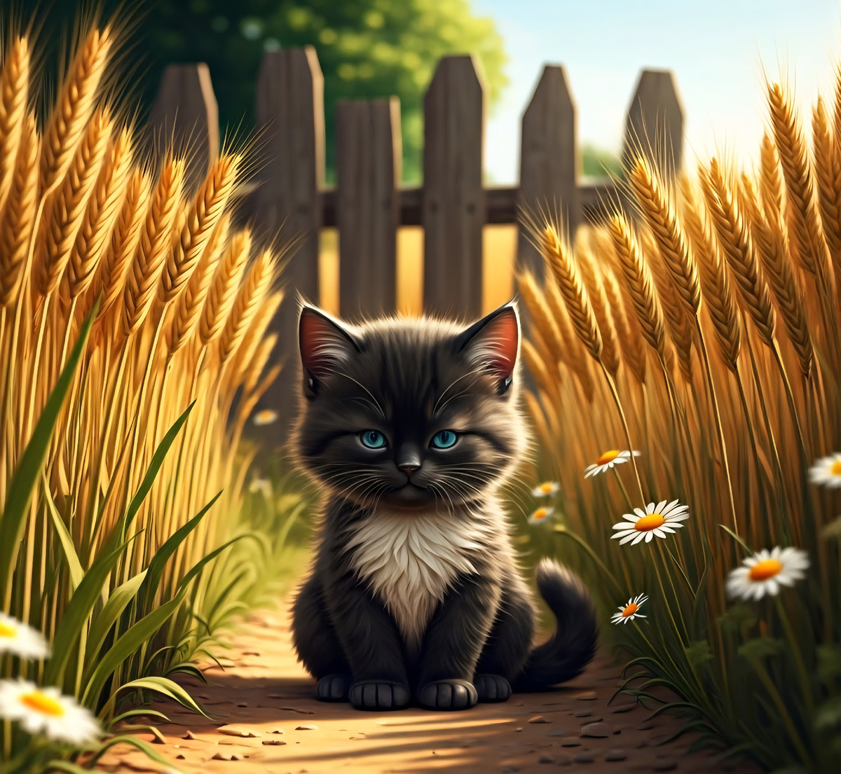 Еще котенок подружился с деревенскими ребятами. Они каждый день гуляли и играли. А дедушка Цезарь сводил малыша на его первую в жизни рыбалку. Но это, уже другая история..